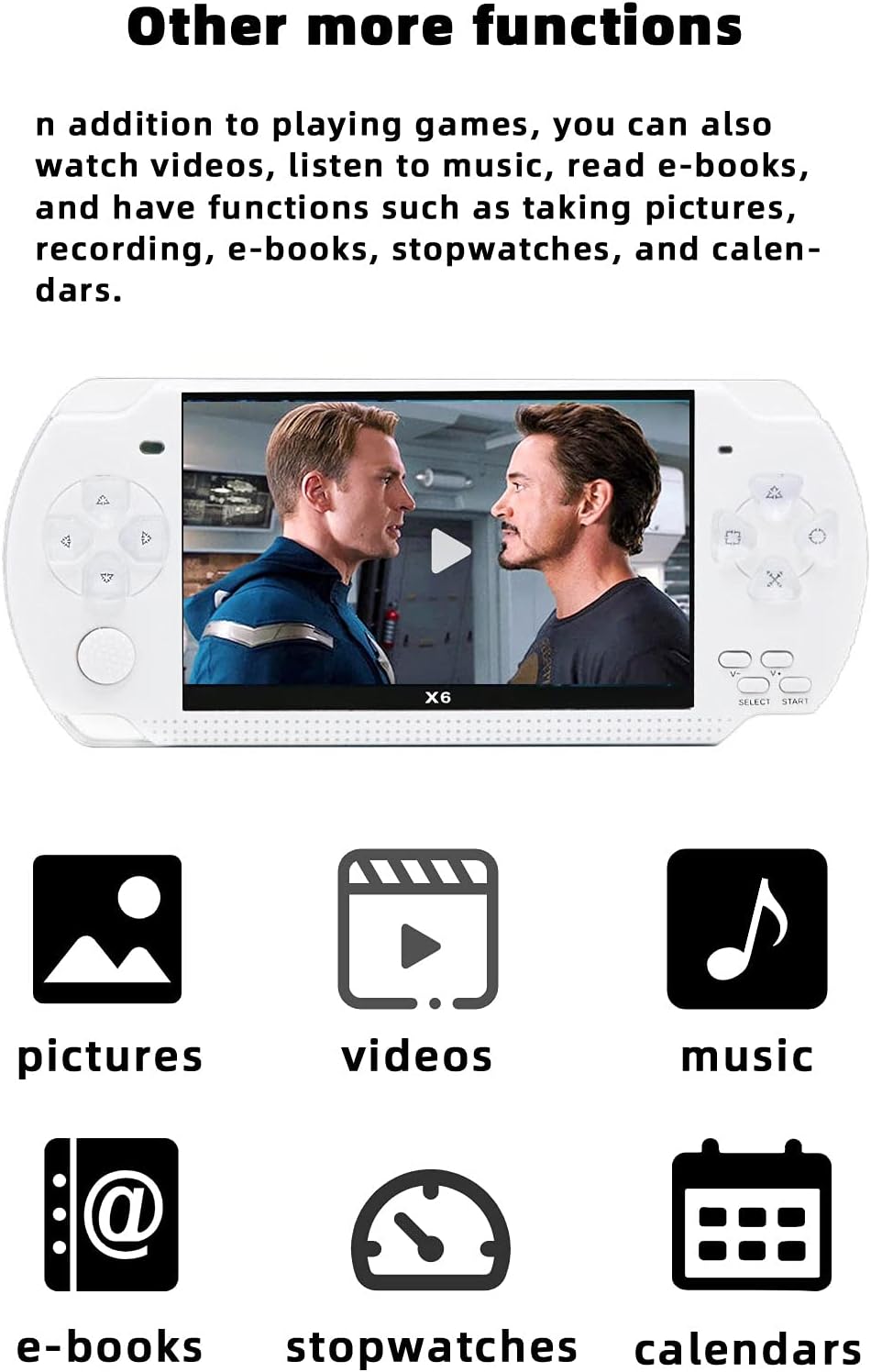 It’s not just a game console. When you don’t want to play games, it can also watch movies, electronic music and e-books. It also has recording, e-book, stopwatch, calendar and other functions.;Maximum support 64GB TF card expansion.