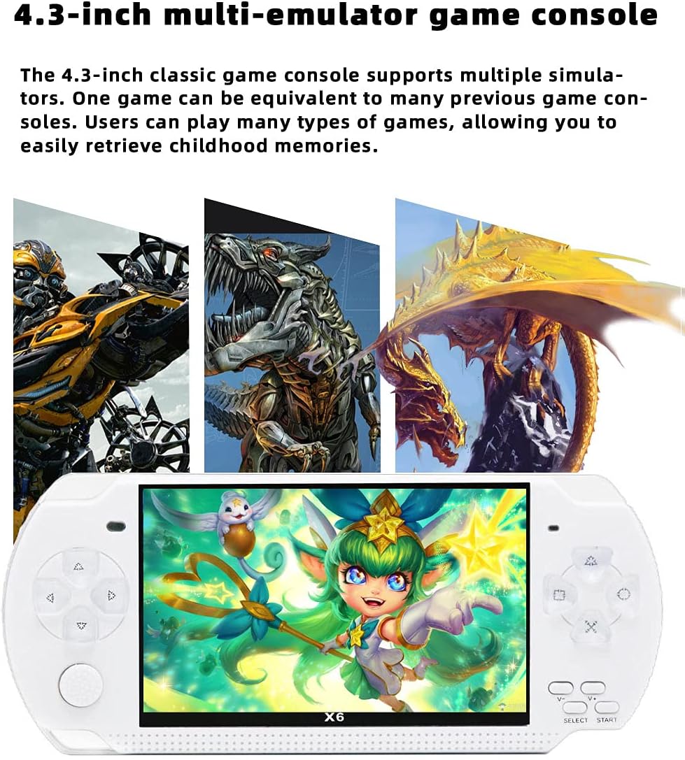 JXD Handheld Game Console 4.3 inch 8GB Built in 2000 Games for Multiple Simulators X6 Retro Video Game Console Mp3/4/Ebook TV Out Mini Hand Portable Game Player Device Holiday (White)