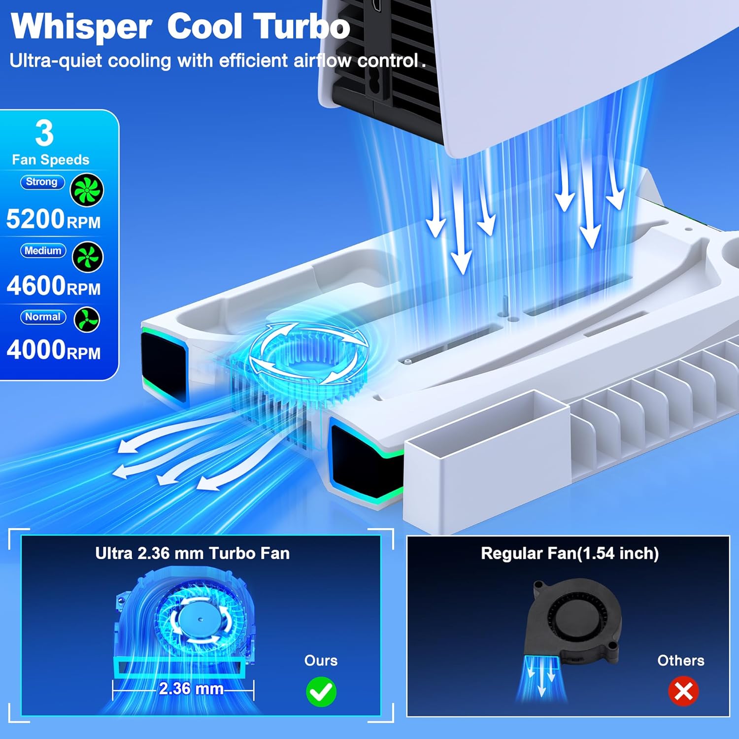 Game On with the Ultimate PS5 Cooling Stand: Level up your gaming setup with our all-in-one ps5 cooling station, this ps5 accessories station designed for both PS5 Pro/PS5 /PS5 Slim. Secure your ps5 console in style and keep it safe while you dive into epic adventures