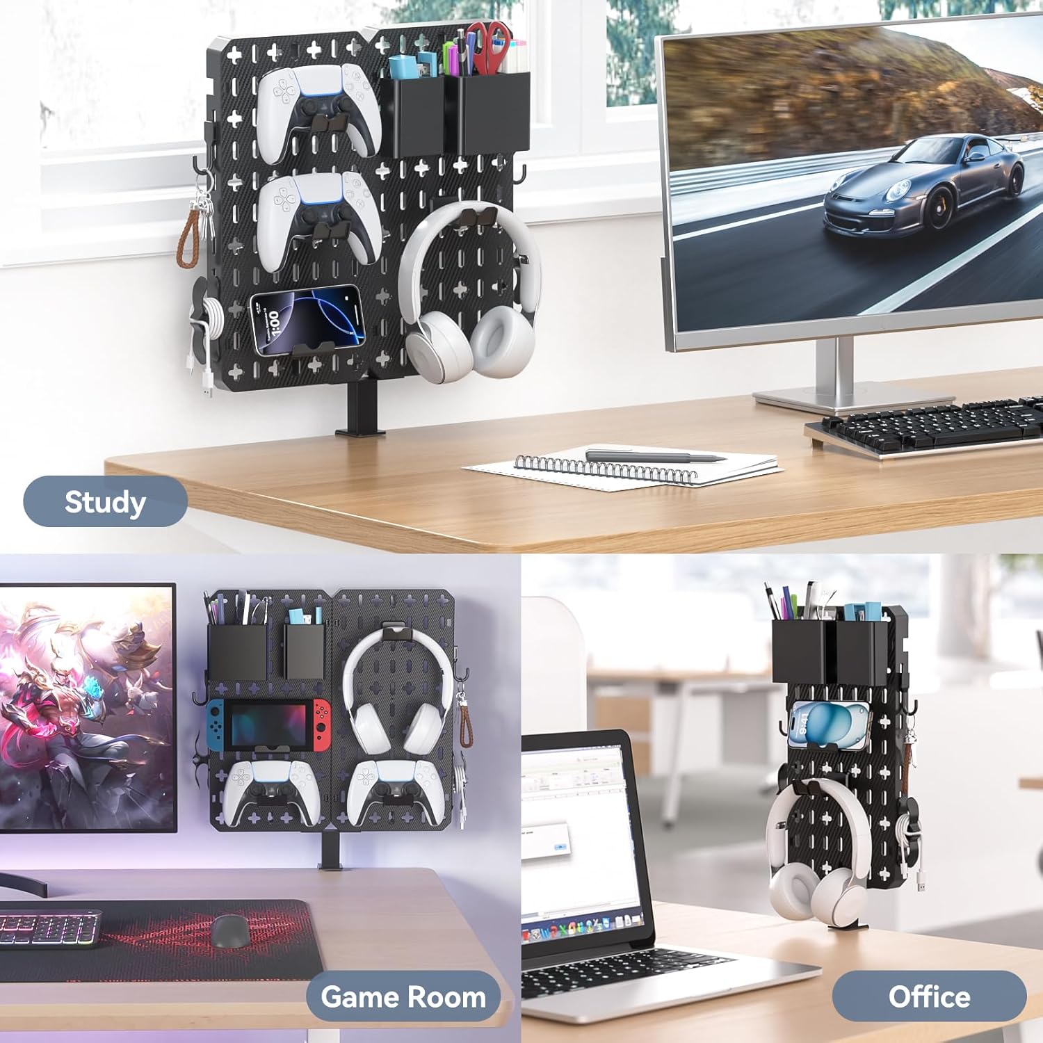 【Wide Applications】 Our gaming pegboard has a wide range of applications in a variety of scenarios. It can be used not only in the game room to organize switch, headphones, controller and other gaming devices, but also in the study to organize cell phones, pens, scissors, keys and other daily necessities. It is a one-stop solution for many storage needs, whether for daily or game time!