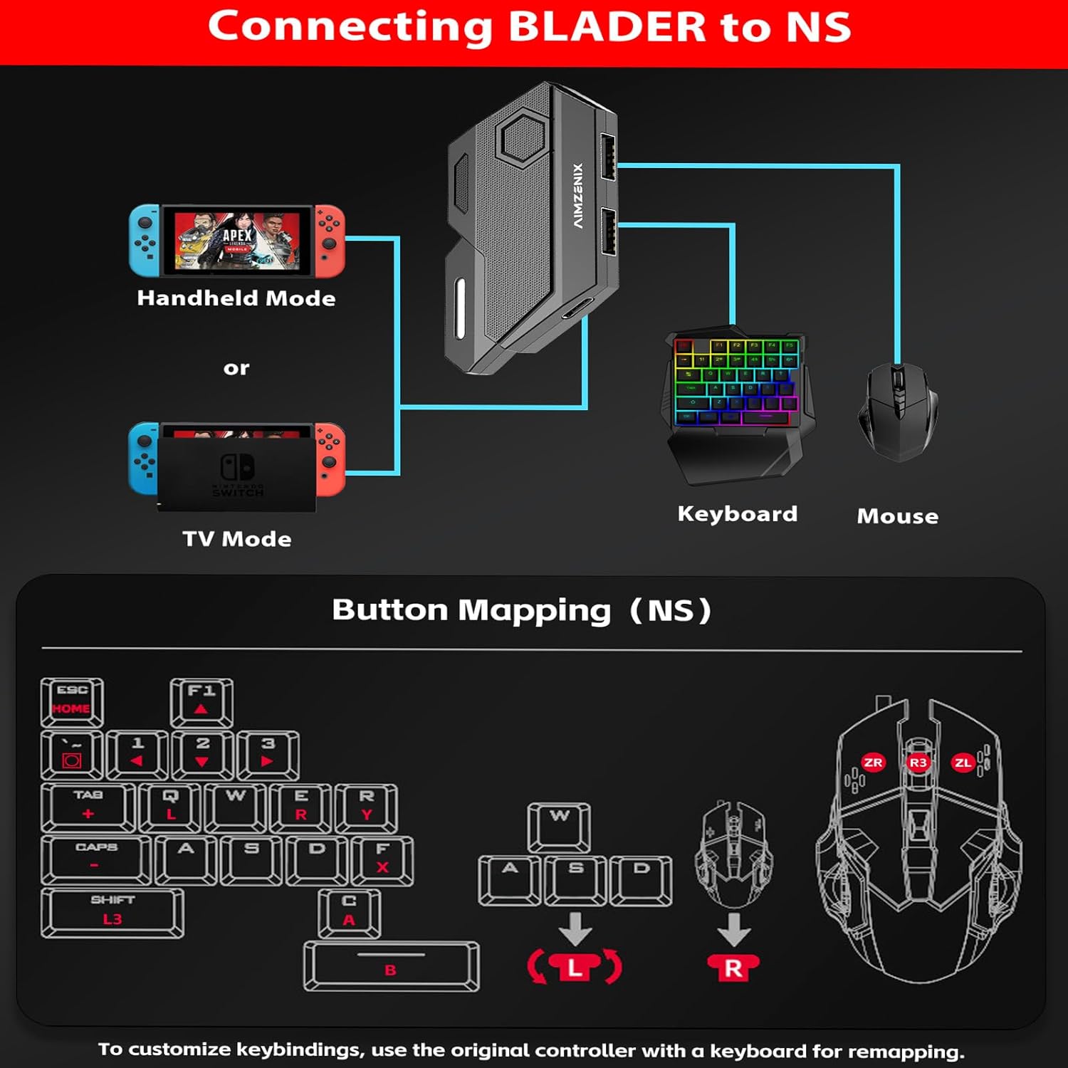 🎮 Read before Use: 1. BLADER does not support mice that require driver installation. 2. Please note that after the controller is connected to the console through the blader, the 3.5mm headphone jack on the controller will become invalid