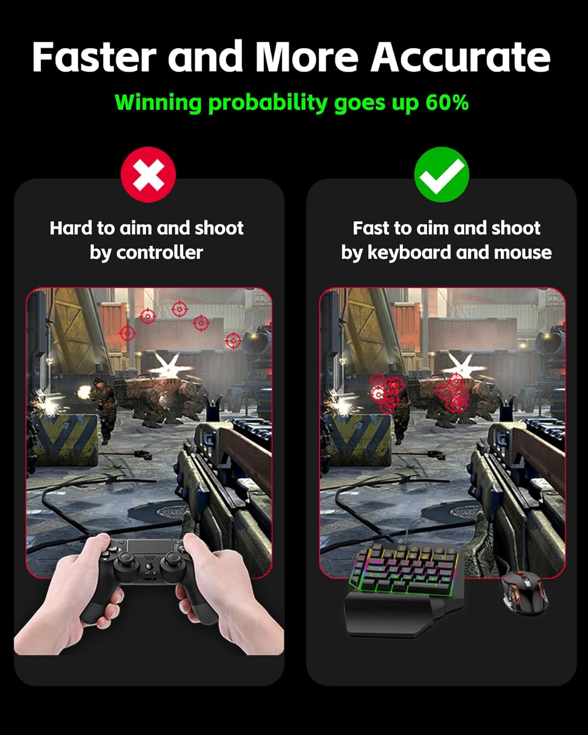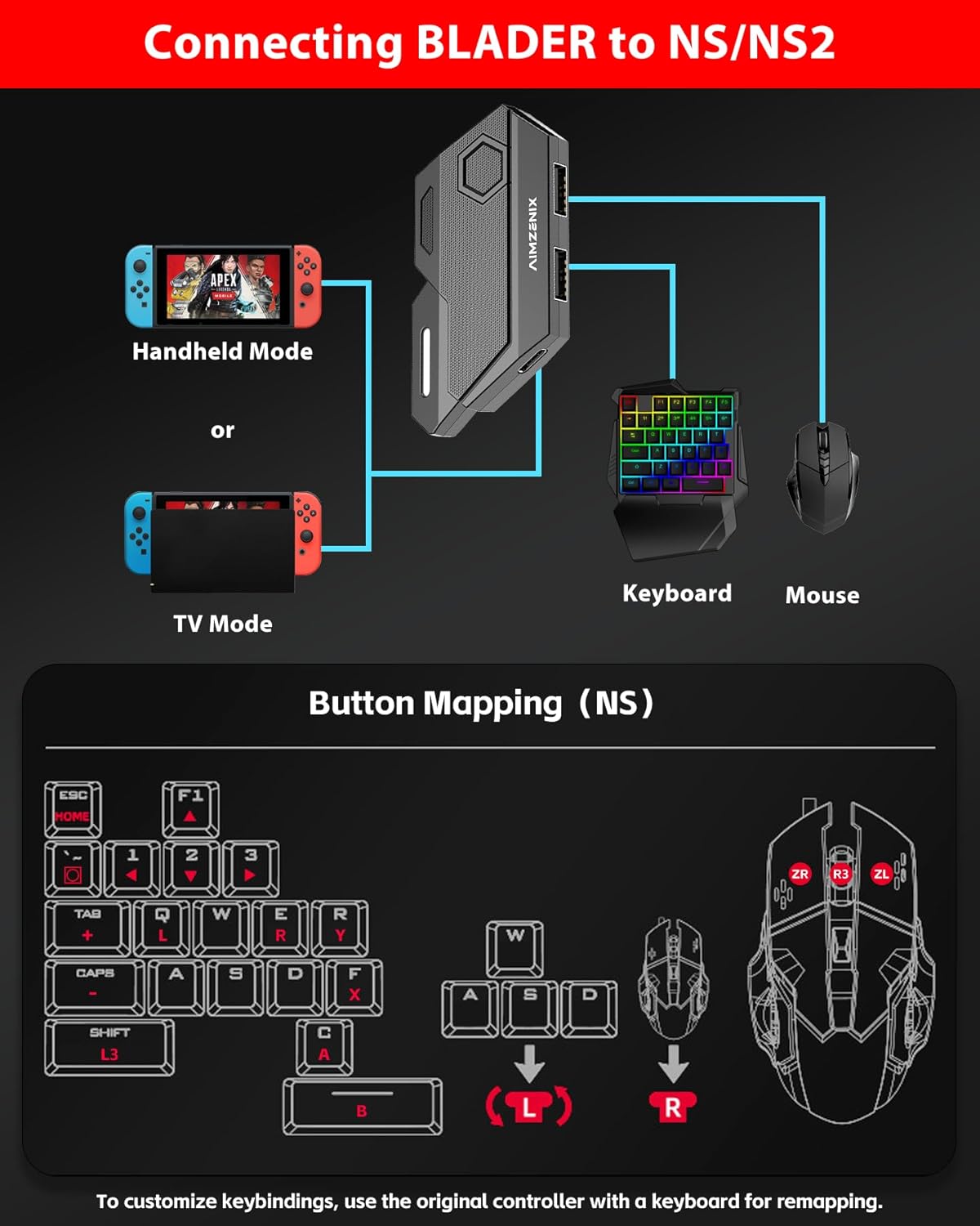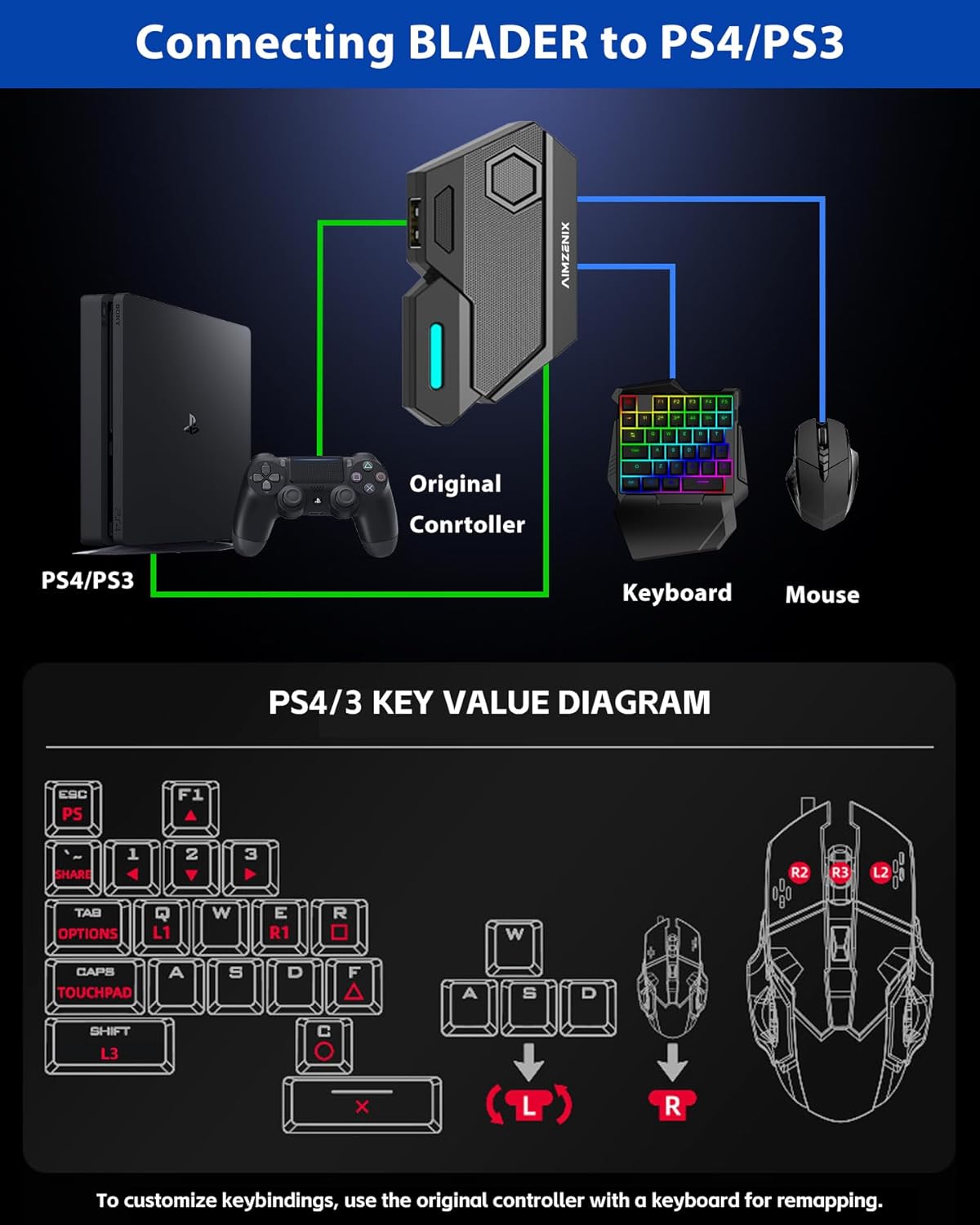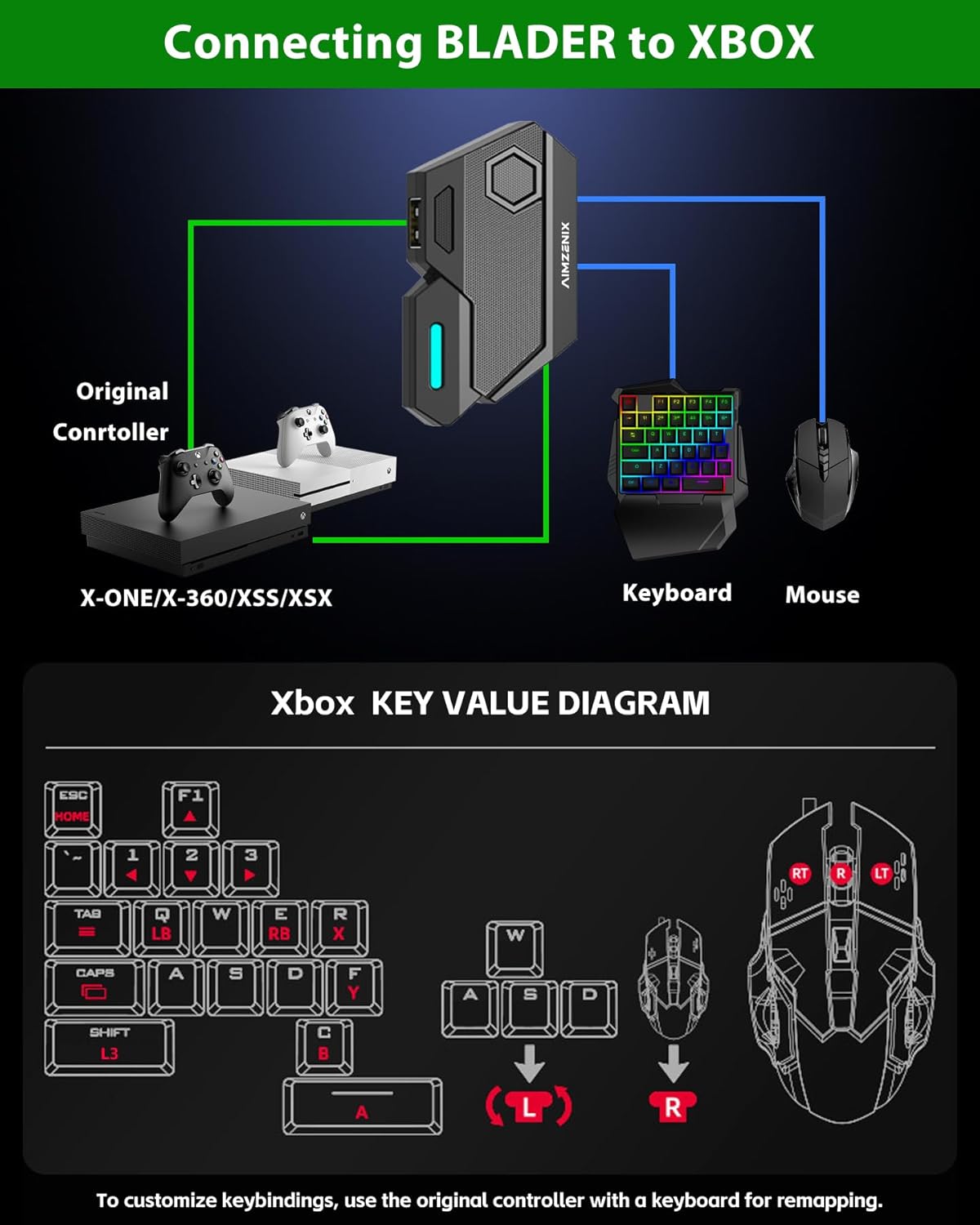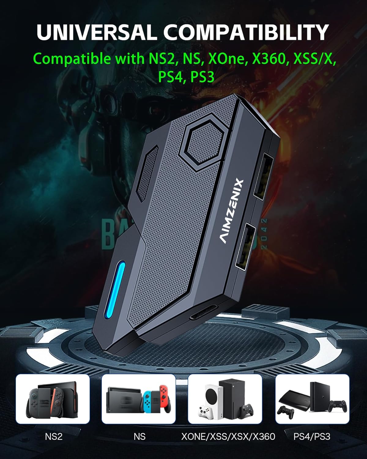 Multi-platform compatibility: The AIMZENIX BLADER keyboard and mouse adapter is compatible with Nintendo Switch 2, NS, Xbox One, Xbox Series X/S, PS 4. The BLADER simulate keyboard and mouse inputs as controller signals, providing you with more flexible control on gaming consoles