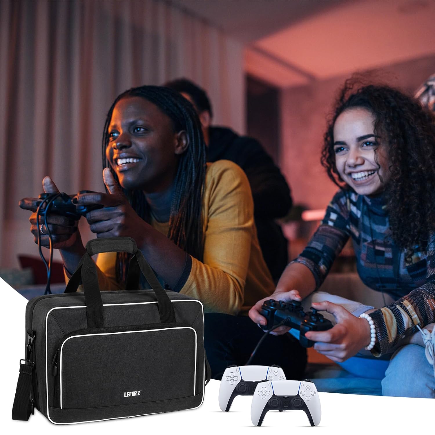 LEFOR·Z Carrying Case Compatible with PS5/PS5 Pro/PS4,17 Pockets Travel Storage Bag with Thick Padding Compatible with Playstation 5/PS5 Digital Edition,Controller,Game Discs,Charger & Accessories