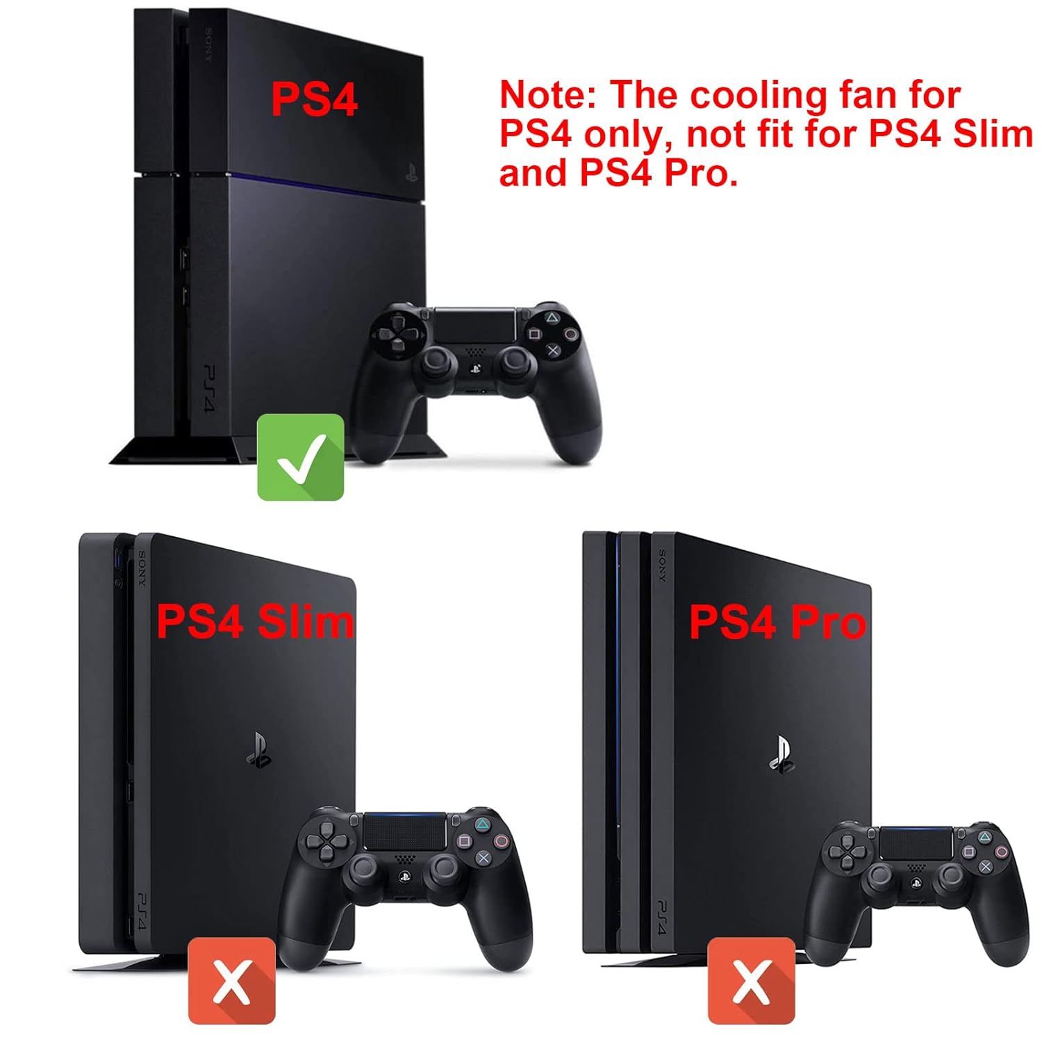 This cooling fan fit for PS4 only, please make sure you buy the right model. Please fasten it tight onto the back of the console, or abnormal noise will happen. (Does not fit PS4 Slim or PS4 Pro)