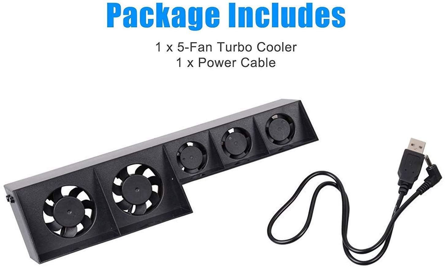 Linkhood Cooling Fan for PS4, USB External Cooler 5 Fan Turbo Temperature Control Cooling Fans for Sony PlayStation 4 Gaming Console (for PS4 ONLY)
