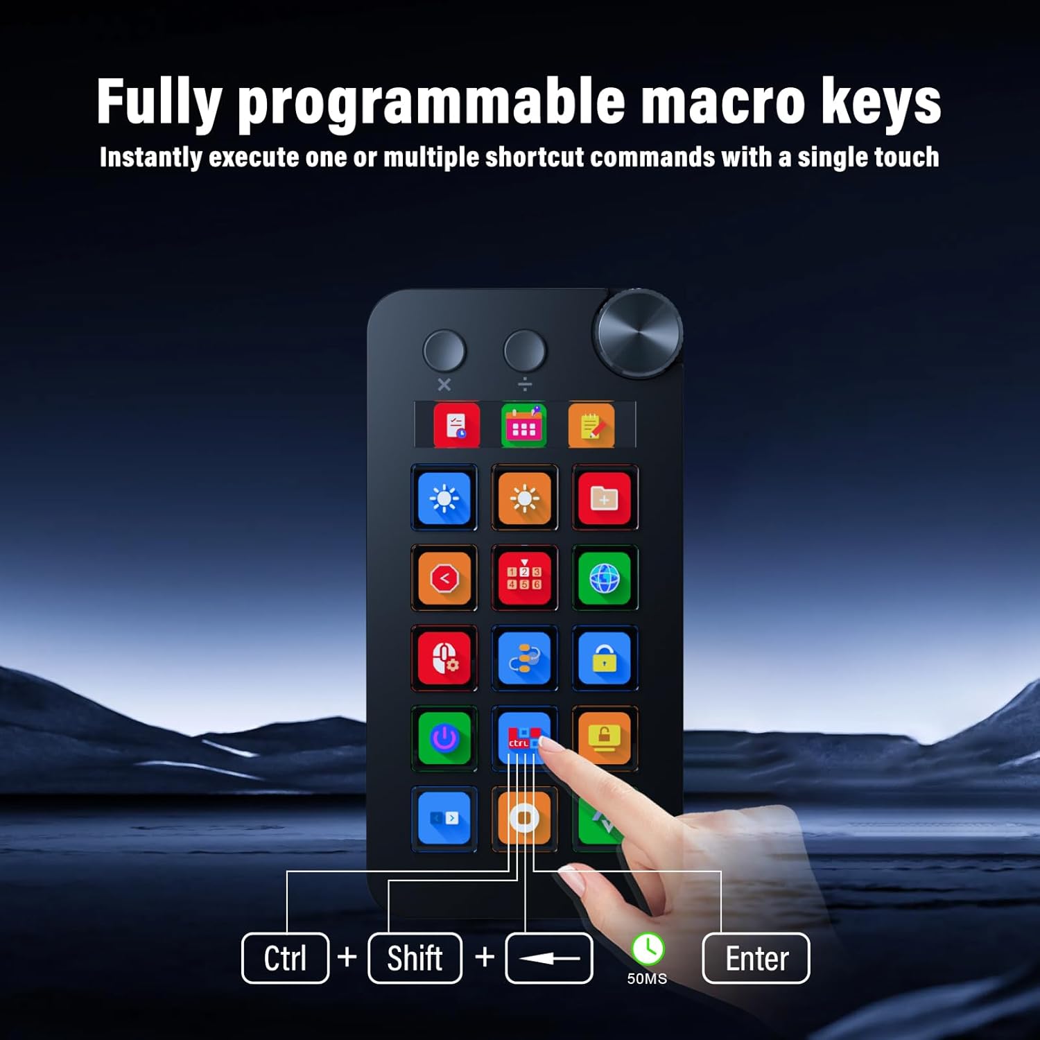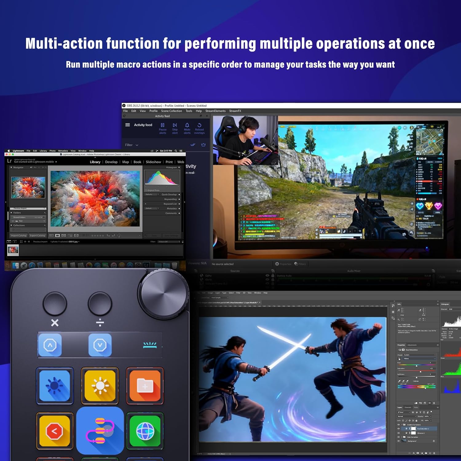 【Work Efficiently with One Touch】Instantly launch macro commands, enter text, open documents and websites, execute game combos, launch apps, edit videos, control media, switch OBS scenes, hide sources, start streaming, and more with just one touch. Additionally, the “Action Flow” feature lets you execute multiple macro actions in a specific order, giving you complete control over your tasks.