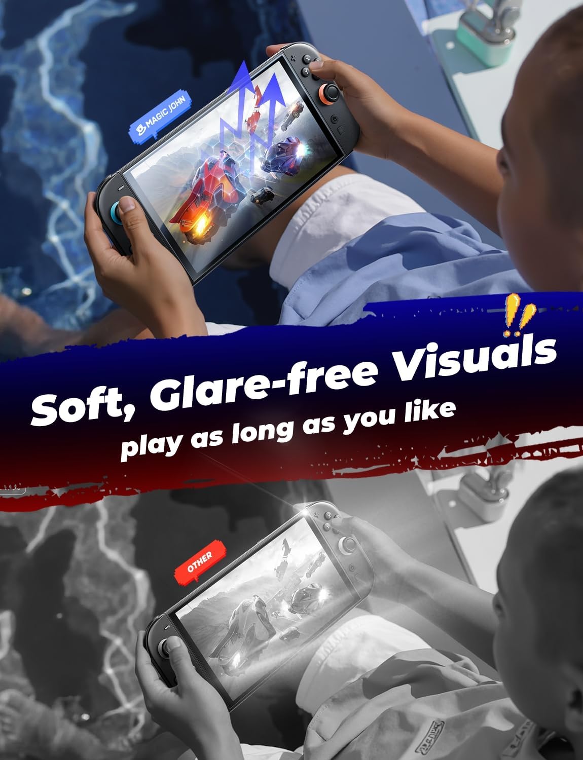 9H Hardness & Full Coverage: The MAGIC JOHN Switch 2 eye protection screen protector features a 9H hardness design that resists daily drops, impacts, and scratches on buttons within bags. Its full-edge-to-edge coverage prevents smudges, while bubble-free adhesive ensures a seamless installation