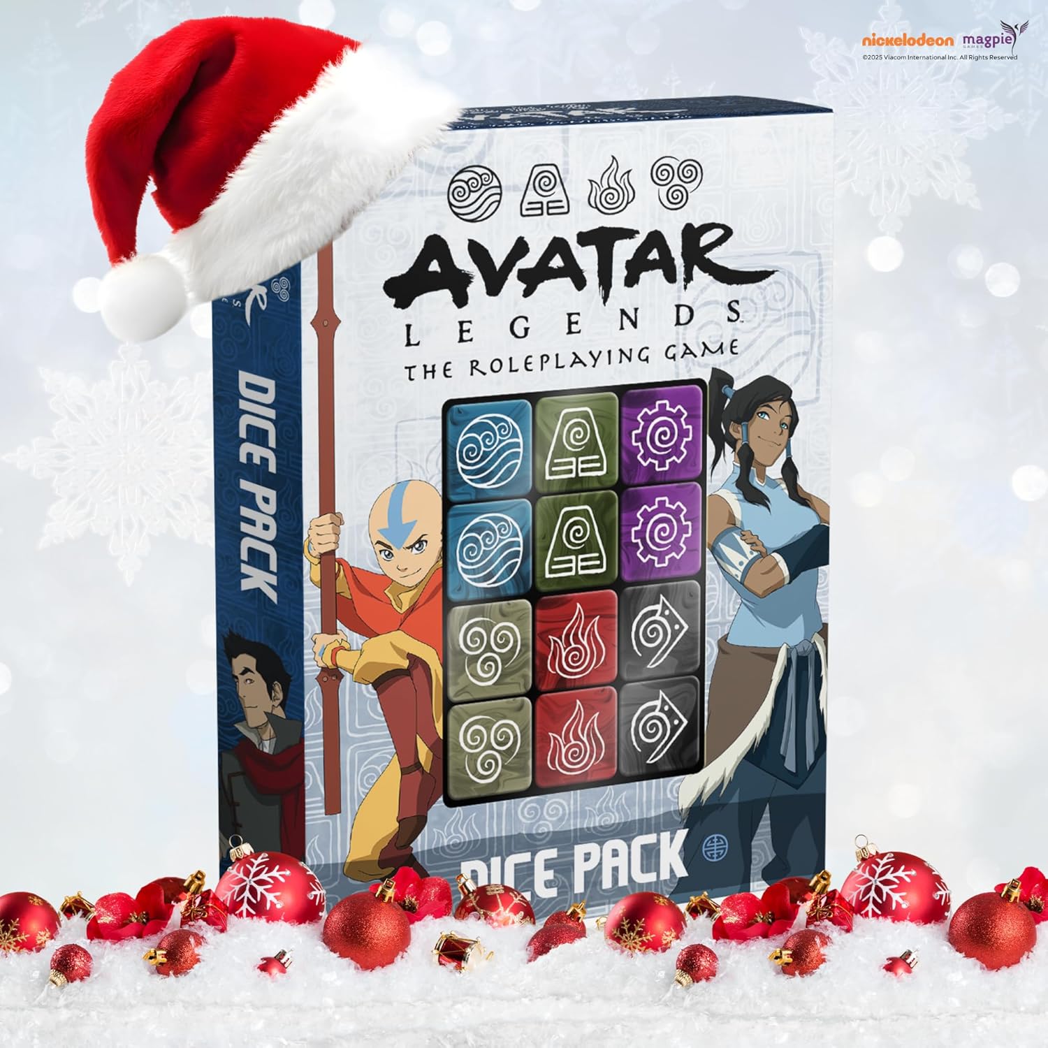 EXPANSION FOR AVATAR LEGENDS: This dice set of 12 beautiful, 6-sided, officially-licensed Avatar Legends dice is for use in the Avatar Legends: The Roleplaying Game.