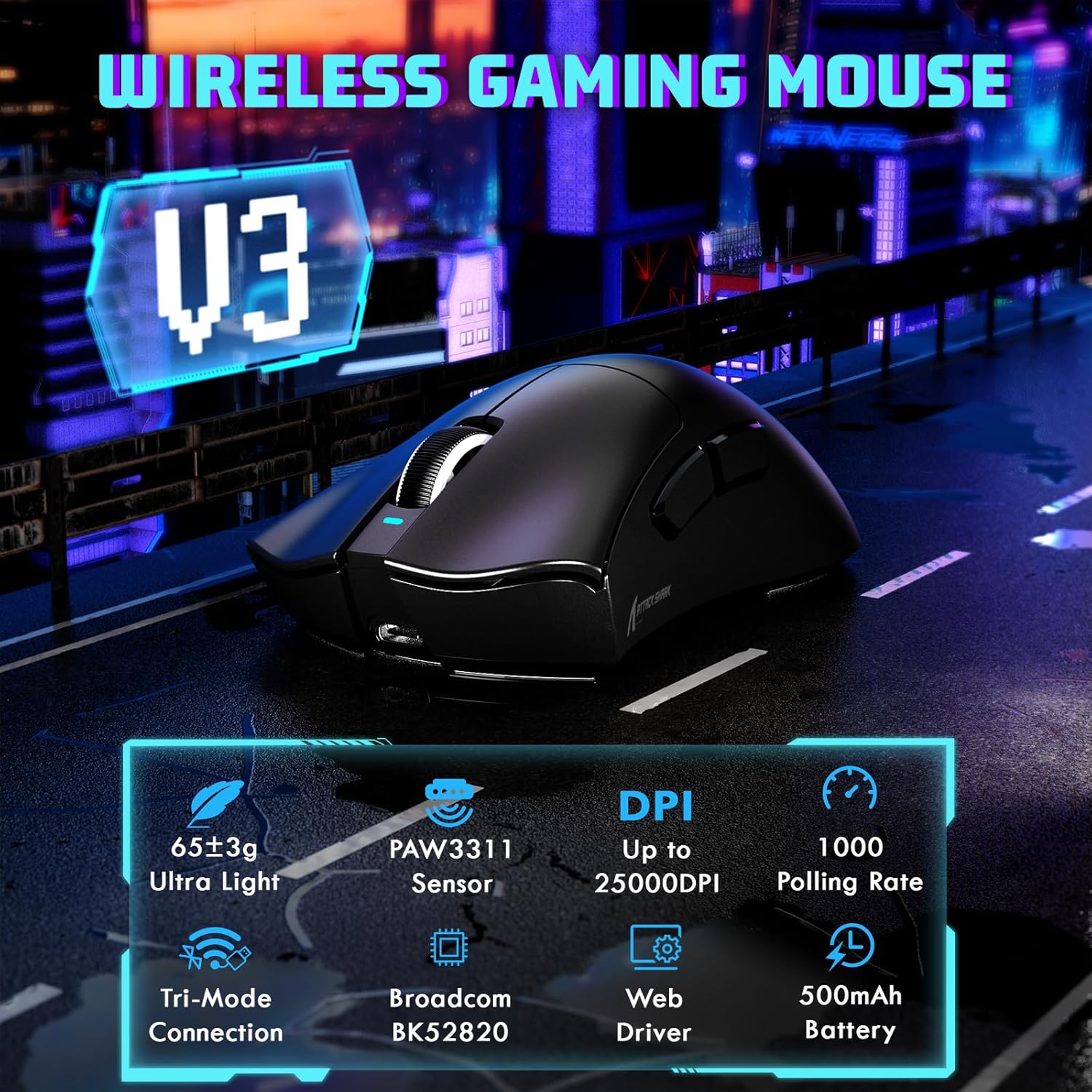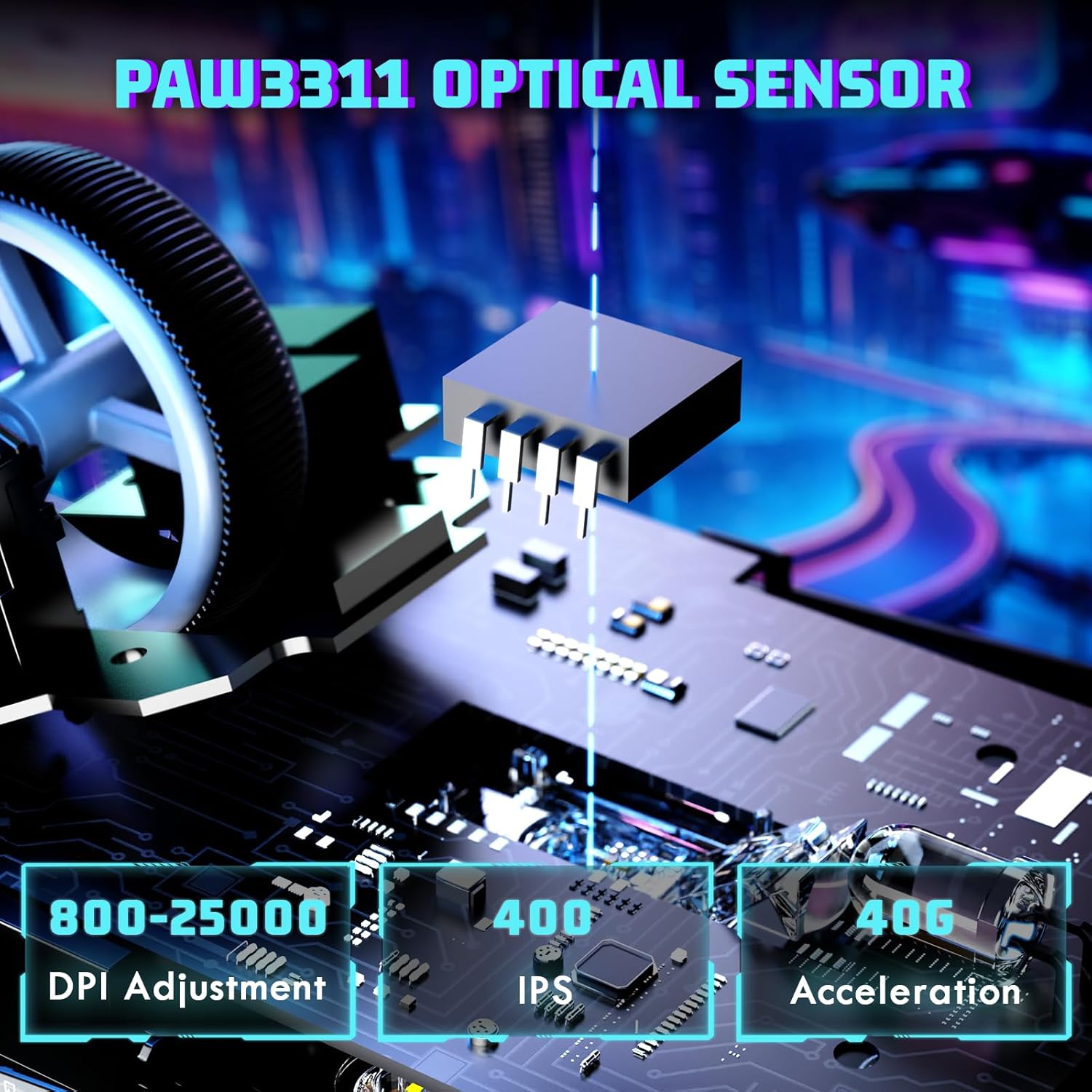 【Precision-Tuned for Esports: PAW3311 Sensor & Broadcom Chip】 Experience pixel-perfect tracking with the PixArt PAW3311 optical sensor, offering 25,000 DPI, 400 IPS, and 40G acceleration. Driven by the custom Broadcom BK52820 flagship chip, it delivers ultra-low latency, rock-solid connectivity, and flawless performance for competitive FPS and MOBA gaming.