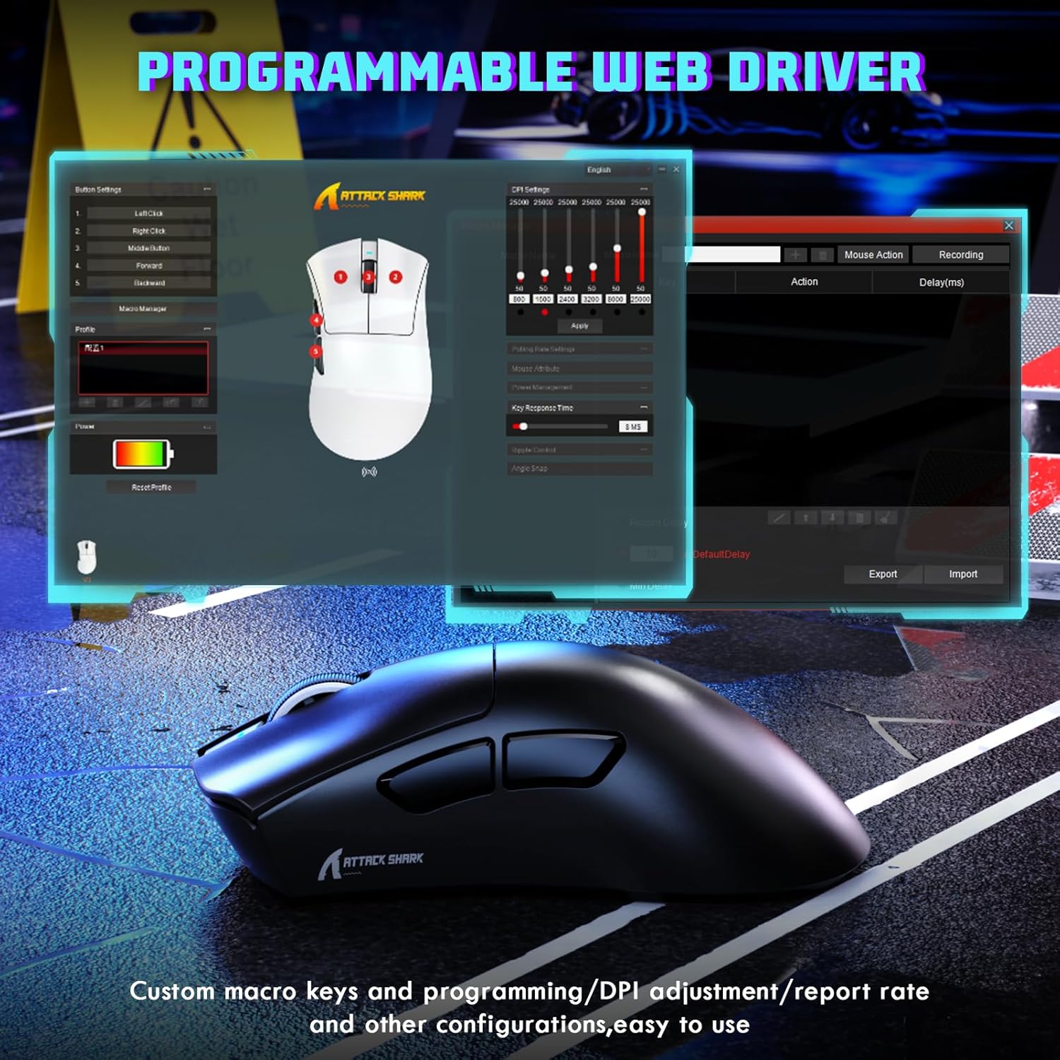 MAMBASNAKE × Attack Shark V3 Wireless Gaming Mouse,Adjustable 25K DPI PAW3311 Optical Sensor,Ergonomic 62g Lightweight 5 Programmable Buttons 500mAH Battery,2.4G/BT/USB-C Wired for PC/Mac-Black