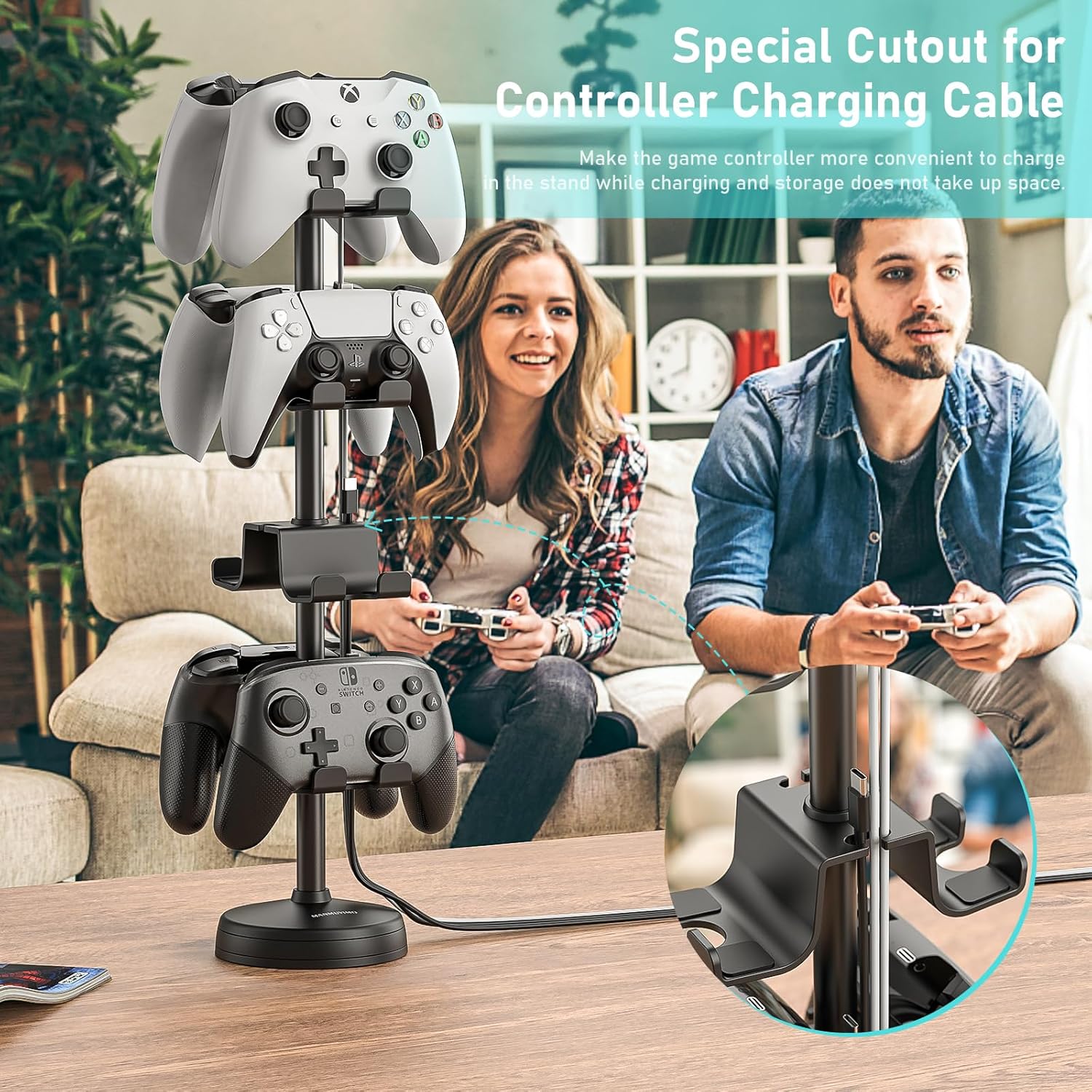 MANMUVIMO Headphone Controller Storage Holder for Desk 4 Tiers with Anti-Slip Stable Suction Cup, Controller Holder, Universal Gaming Desk Accessories for PS5/PS4/Xbox Series/Xbox One
