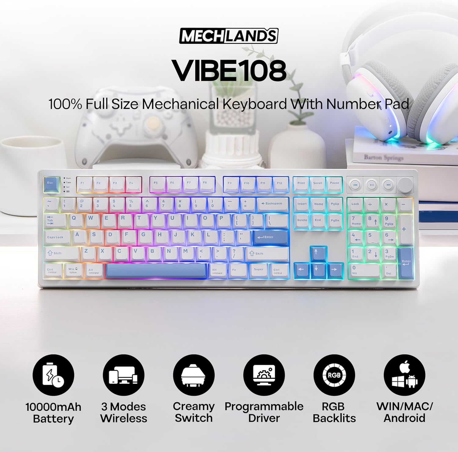 MechLands Vibe108 Mechanical Keyboard with Creamy Linear Switch Vibe108Vibe108