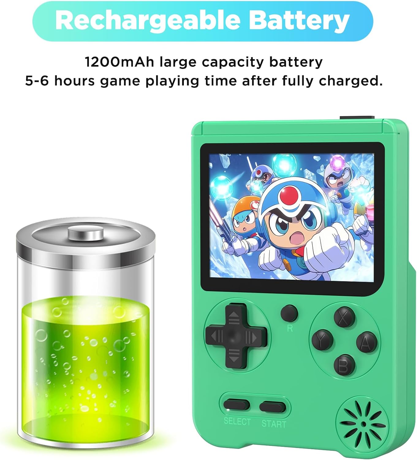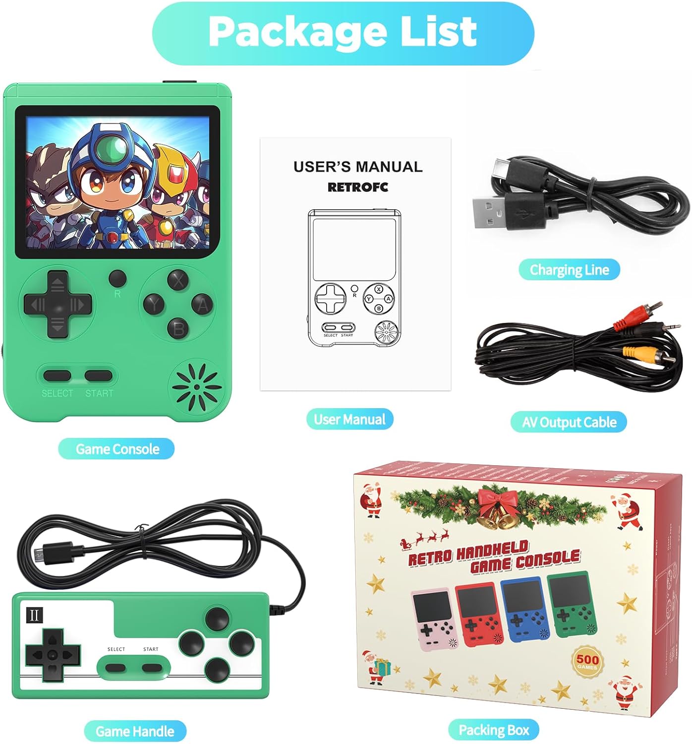 Mini Handheld FC Game Console, 3.0 Inch LED Display Support Playing on TV, with Rechargeable Battery and Portable Arcade – Ideal Festival & Birthday Gift for Kids(Green)