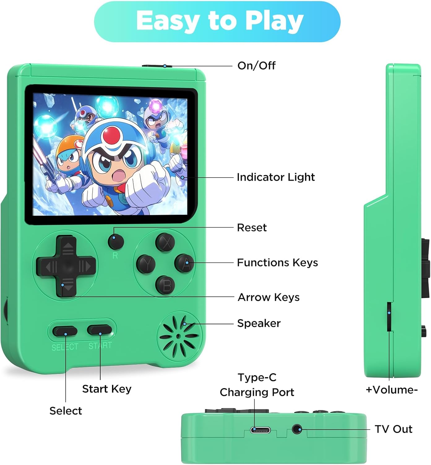 【Portable Size】 Compact and lightweight handheld game console, mini body, carry it with you. On the way to work, free time, the best choice for relaxing mood. Play anytime, anywhere, enjoy the fun of train childhood, airplane, camp or travel.