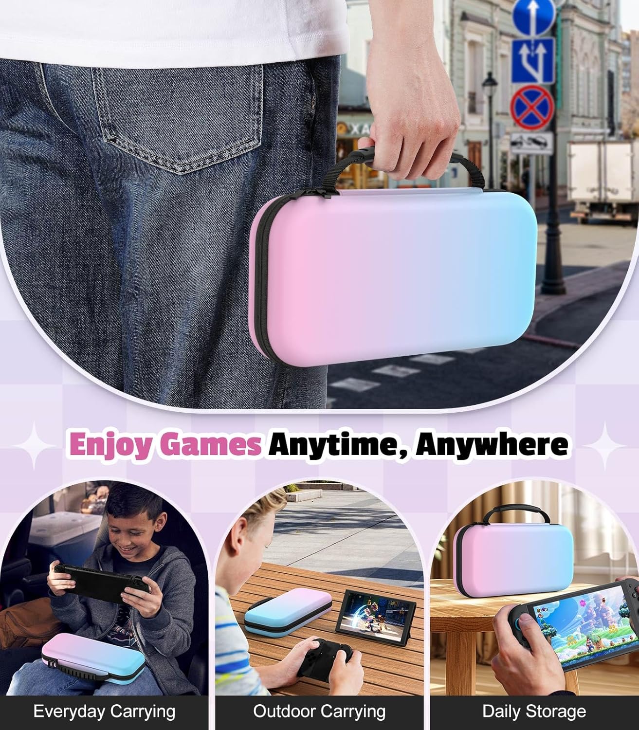 Sleek & Portable: Ultra-lightweight Nintendo Switch 2 travel case with compact rubber handle ensures effortless portability for daily commutes, travel, or on-the-go gaming. Choose from sleek black or vibrant hues to match your vibe – combining scratch-resistant style with practical protection.
