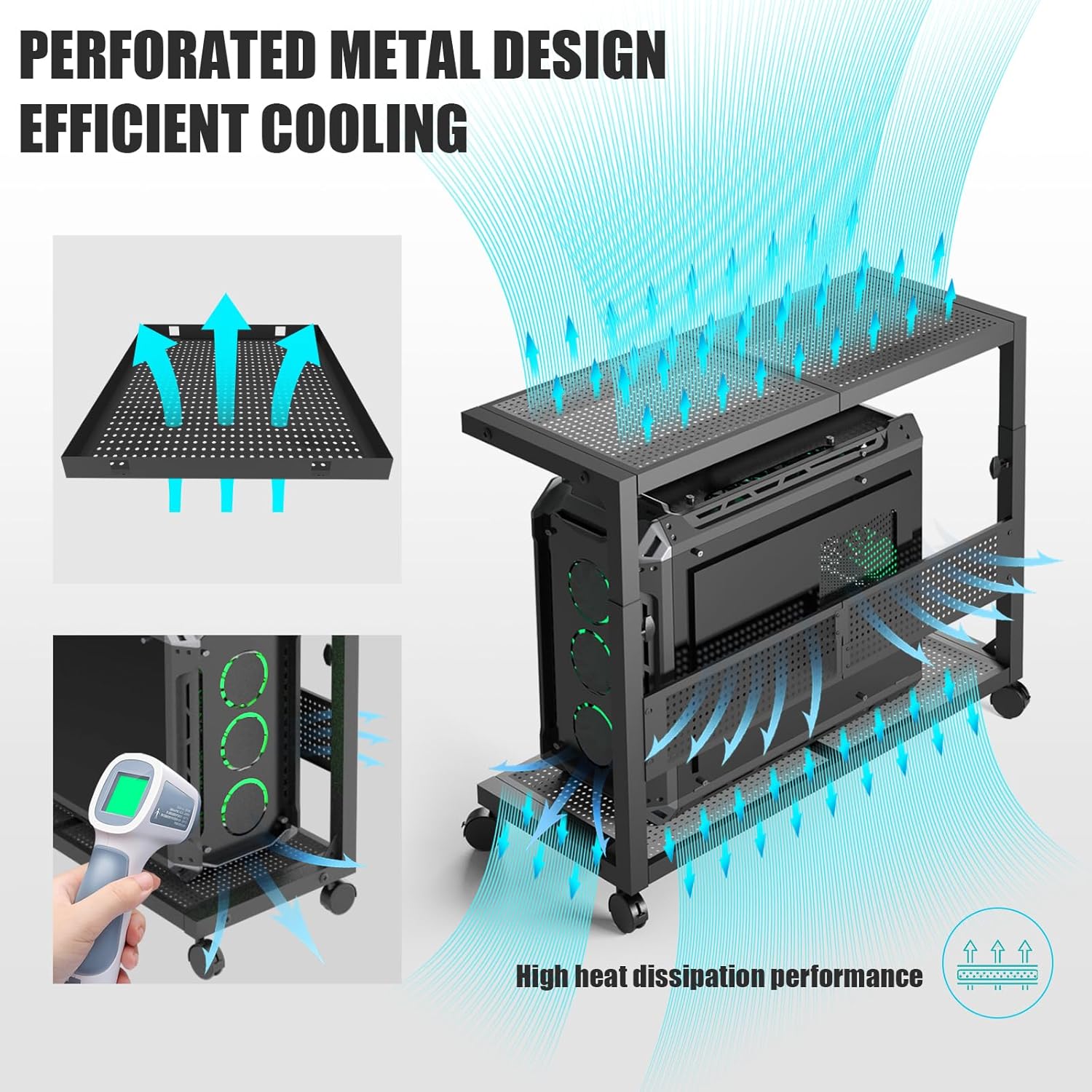 Moricher Computer Tower Stand – Height Adjustable 2-Tier ATX-Case PC Stand Printer Rack Pegboard with Rolling Wheels & Mousepad for Home Office Gaming Accessories
