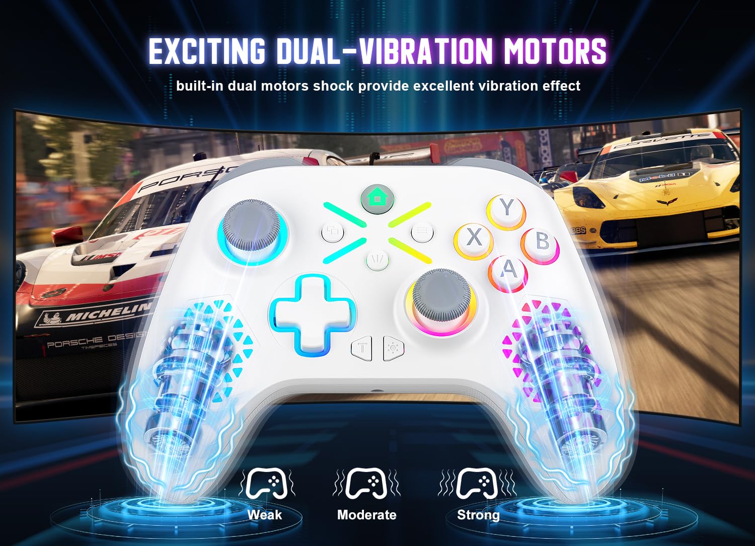 【Comfortable to Play】Streamlined design makes it comfortable to hold the controller for a long time and experience enhanced comfort and feel with exquisitely carved anti-slip texture on the grip, triggers and bumpers.