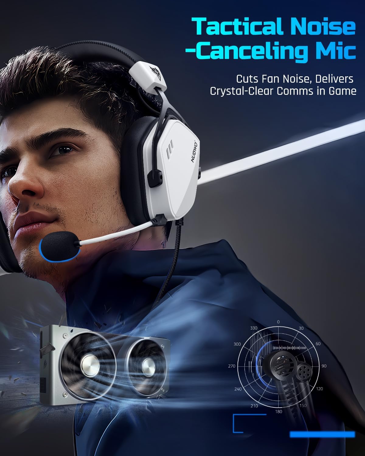 NUBWO HG03 USB-A Gaming Headset with 7.1 Surround and FPS Sound, Wired Headphones with Noise Canceling Mic, Comfortable Design for PC, Laptop – White