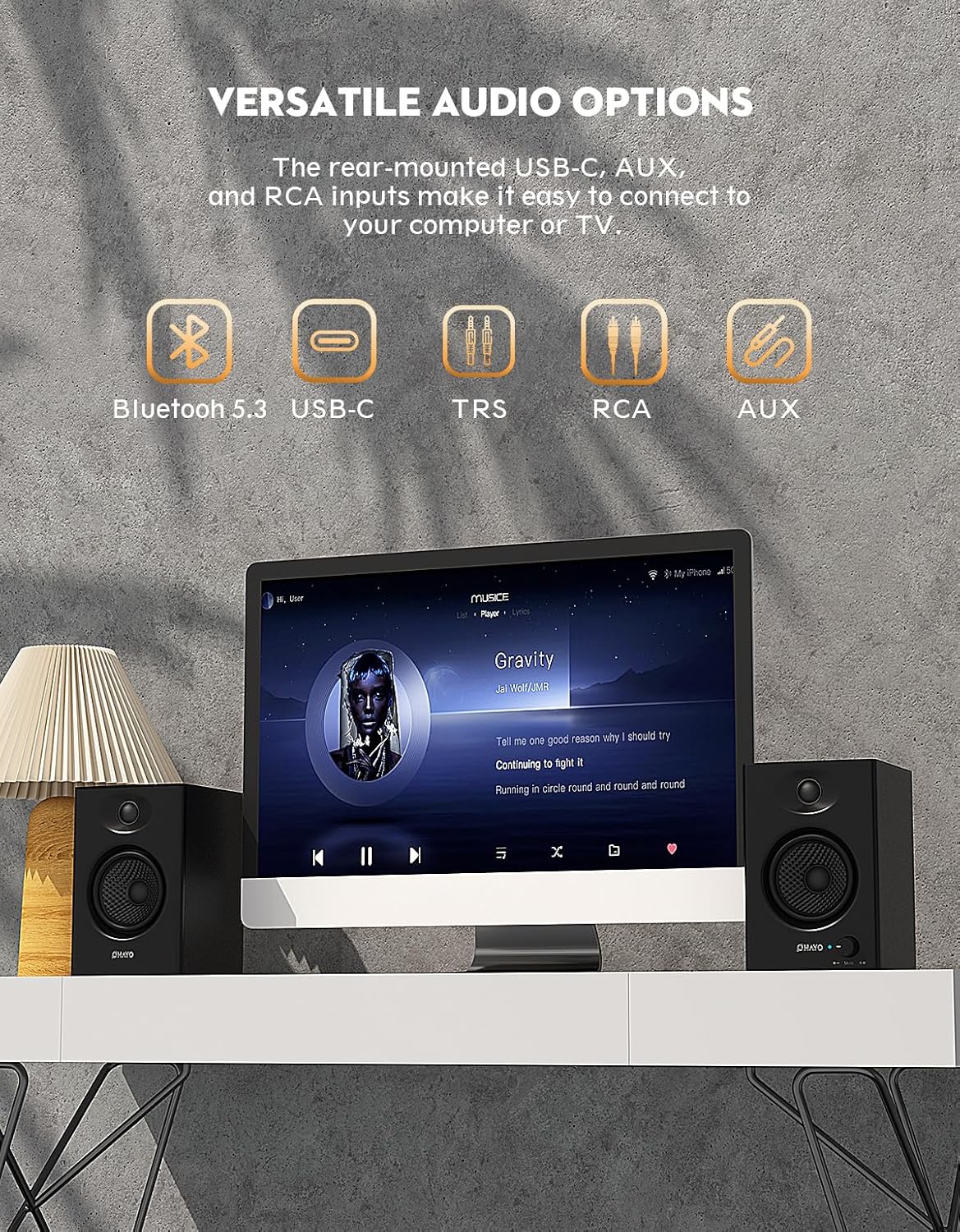 【Versatile Use】The computer speakers for desktop pc Ideal for gaming, music streaming, and enhancing your computer audio experience, these speakers are compatible with smartphones, turntables, desktop or laptop computers, TVs, audio mixers, streaming devices , gaming pc, media players , subwoofers, audio receivers, and more. No matter your setup, these speakers meet all your audio needs with ease.
