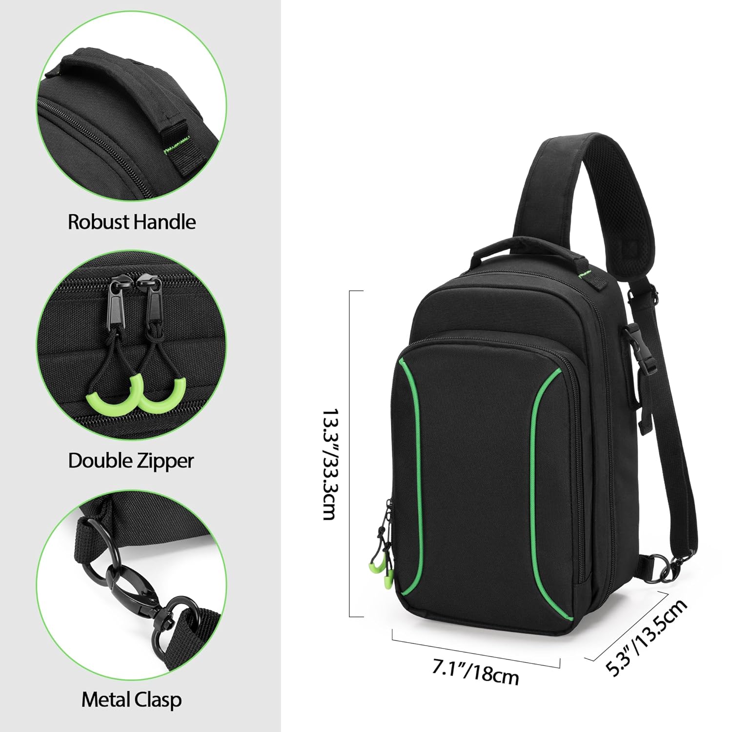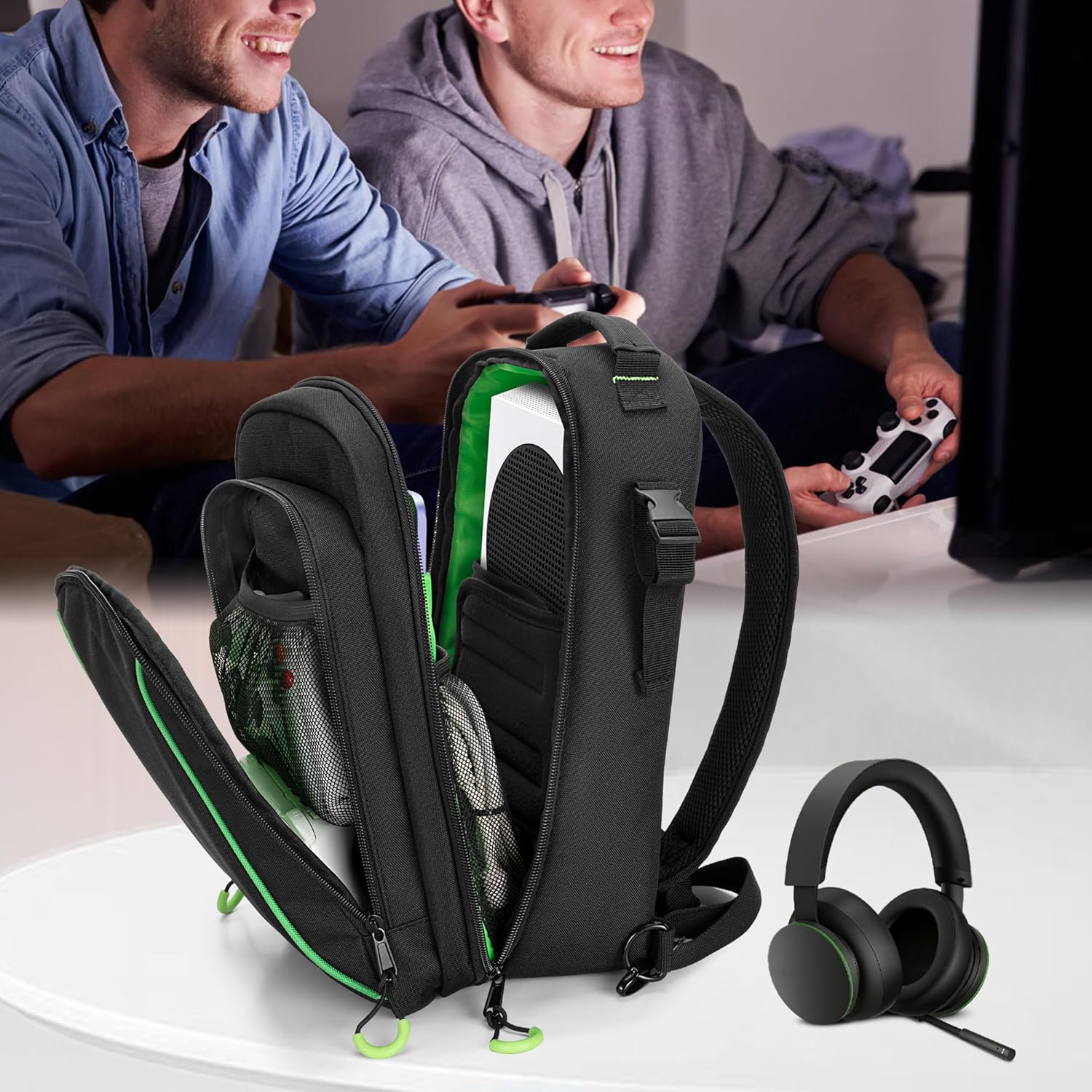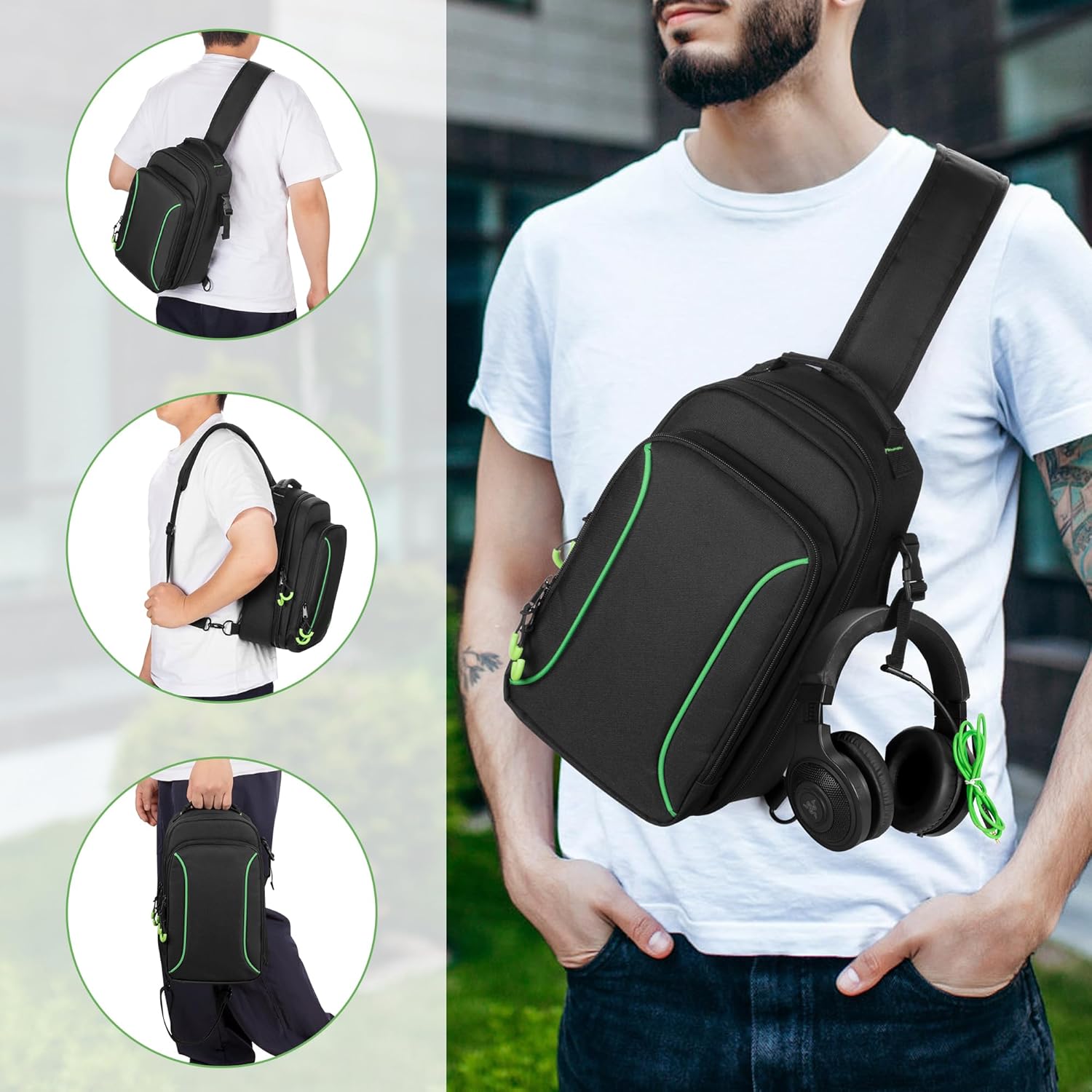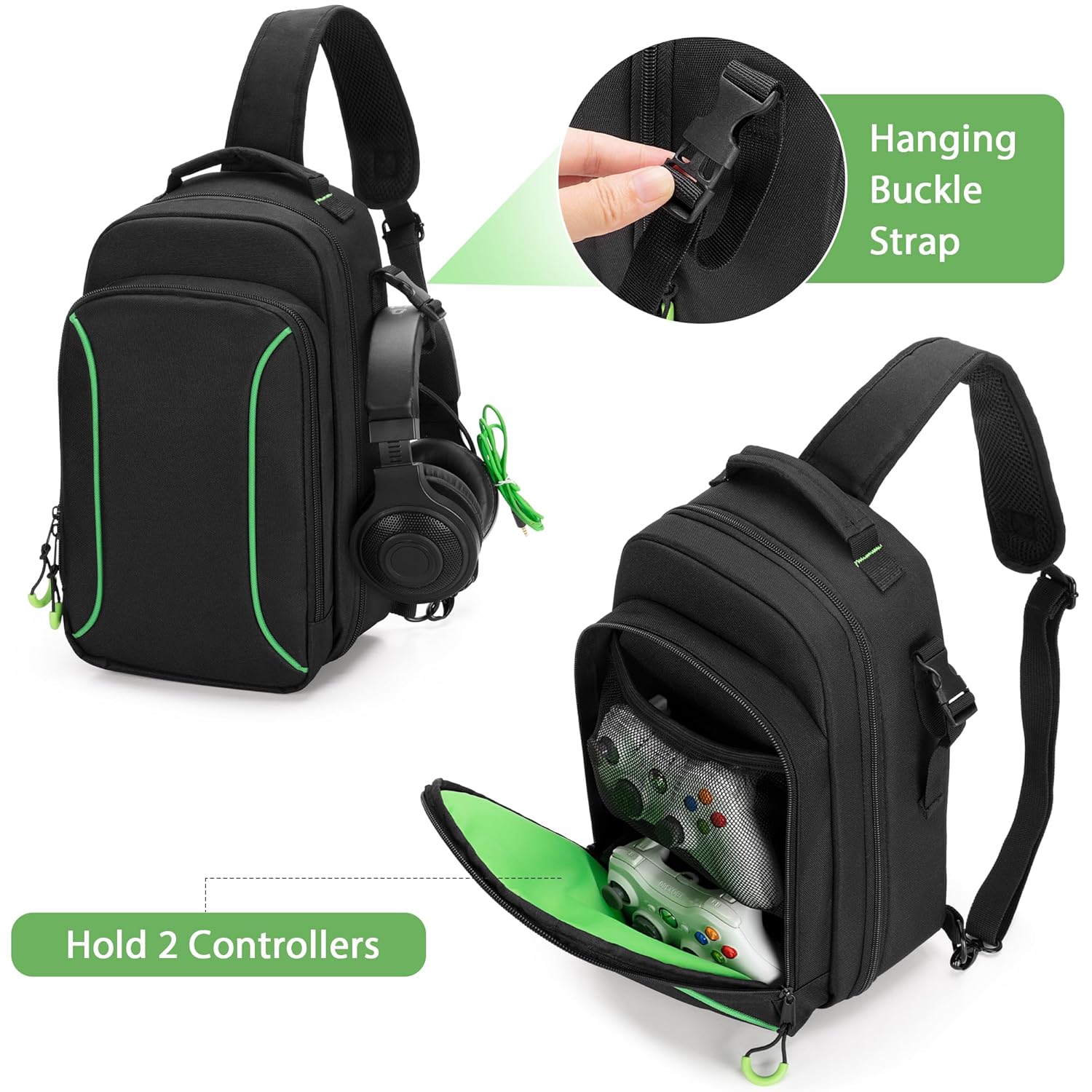 Compatible With: This sling bag is specially designed to compatible with Xbox Series S* console (Our product is unrelated to brand mentioned); The main compartment is equipped with thick padding, and a wide fixing strap to keep your console in place; Ensure console away from impacts and bumps