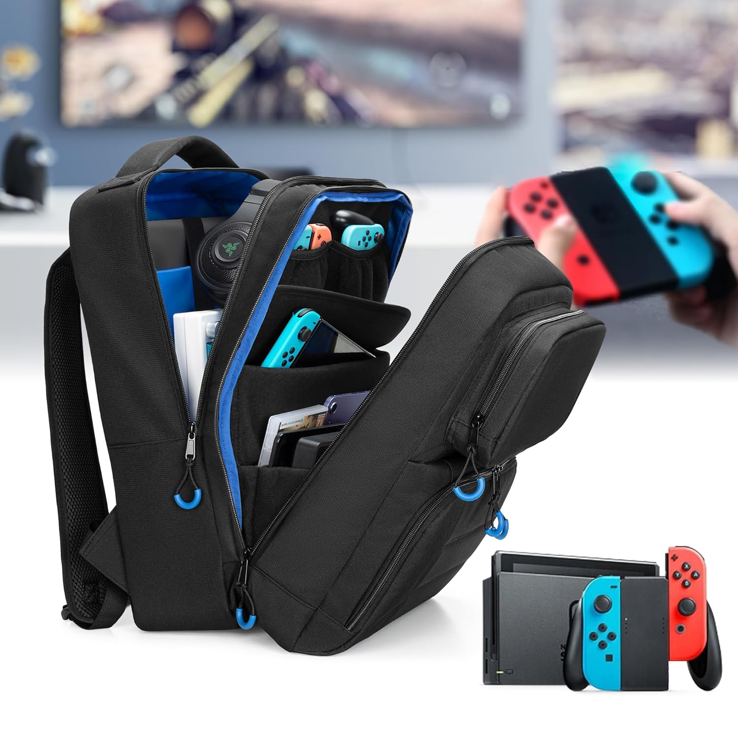 5 pockets of various sizes can keep all your game gears, such as console, Dock, Joy-Cons, Joy-Con Grip, AC Adapter, HDMI Cable.