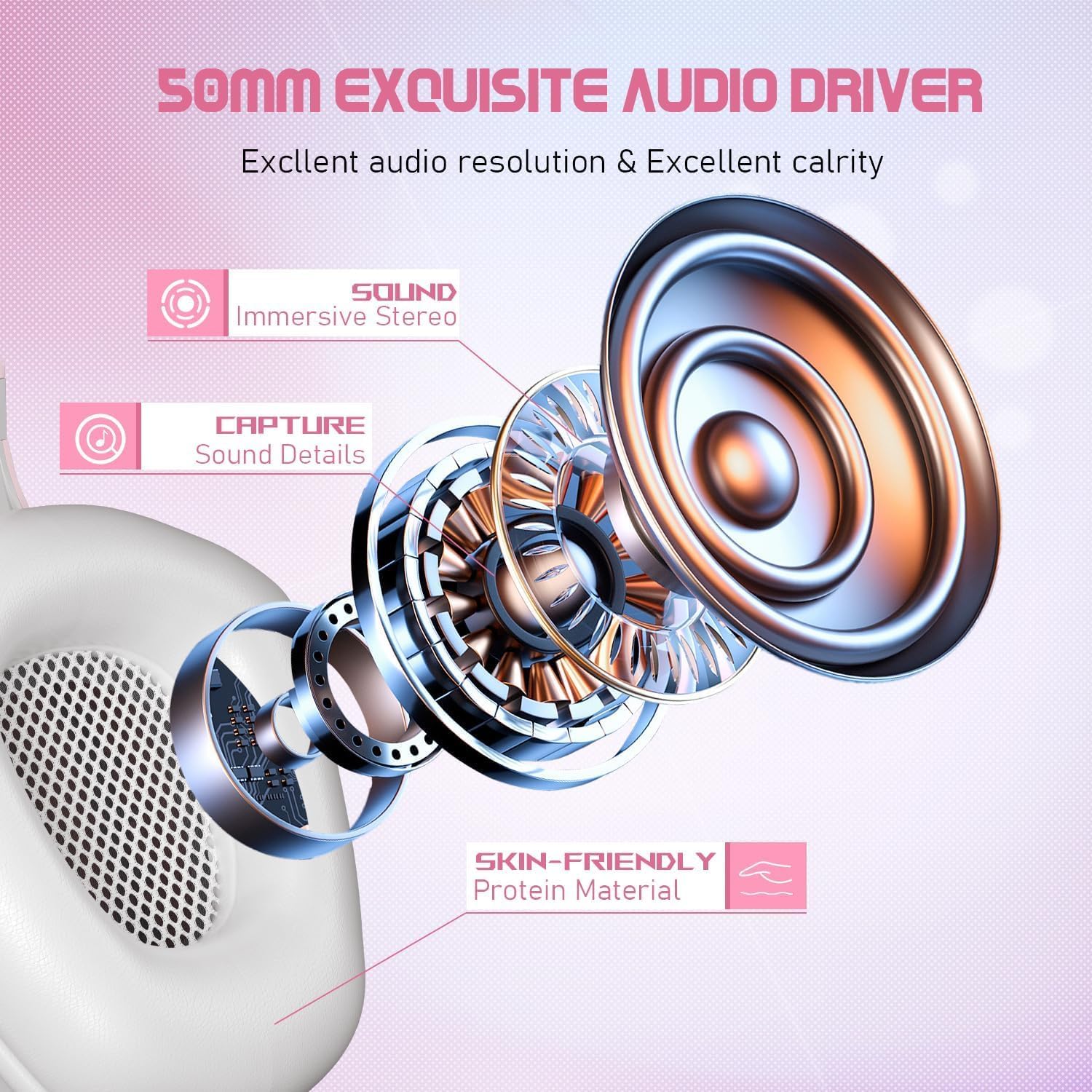 【Superior Sound Quality】: The gaming headset adopts a 50mm high-quality moving coil driver, which reproduces clear and delicate sound quality. The sound quality is clear, the bass is powerful, the sound field is wide, and the volume is adjustable. Whether you are playing games, listening to music or chatting with friends, you can enjoy a wonderful audio experience.