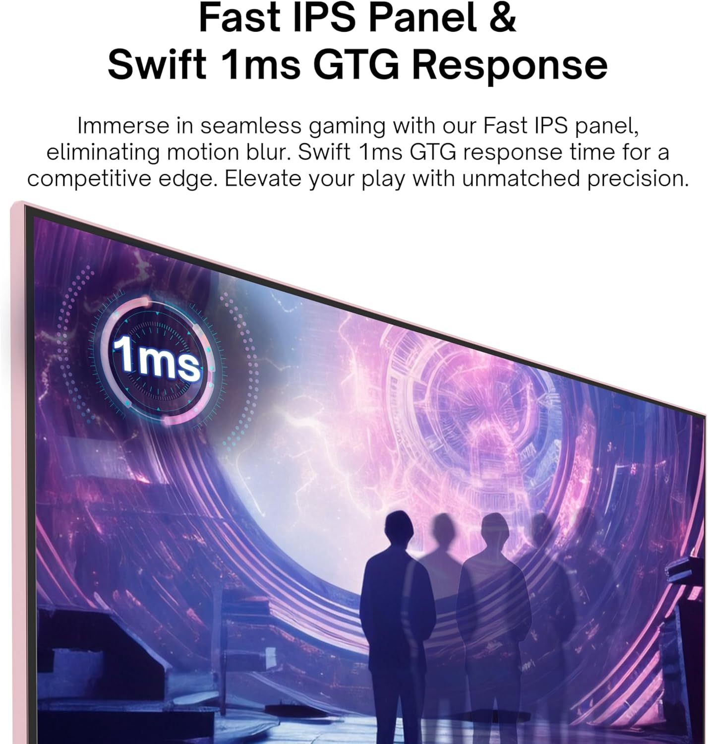 Lightning-Fast 1ms Response Time – See your actions come to life instantly with a remarkable 1ms response time. No more frustrating ghosting or trailing, just pure, unadulterated speed that gives you the edge in competitive gaming.