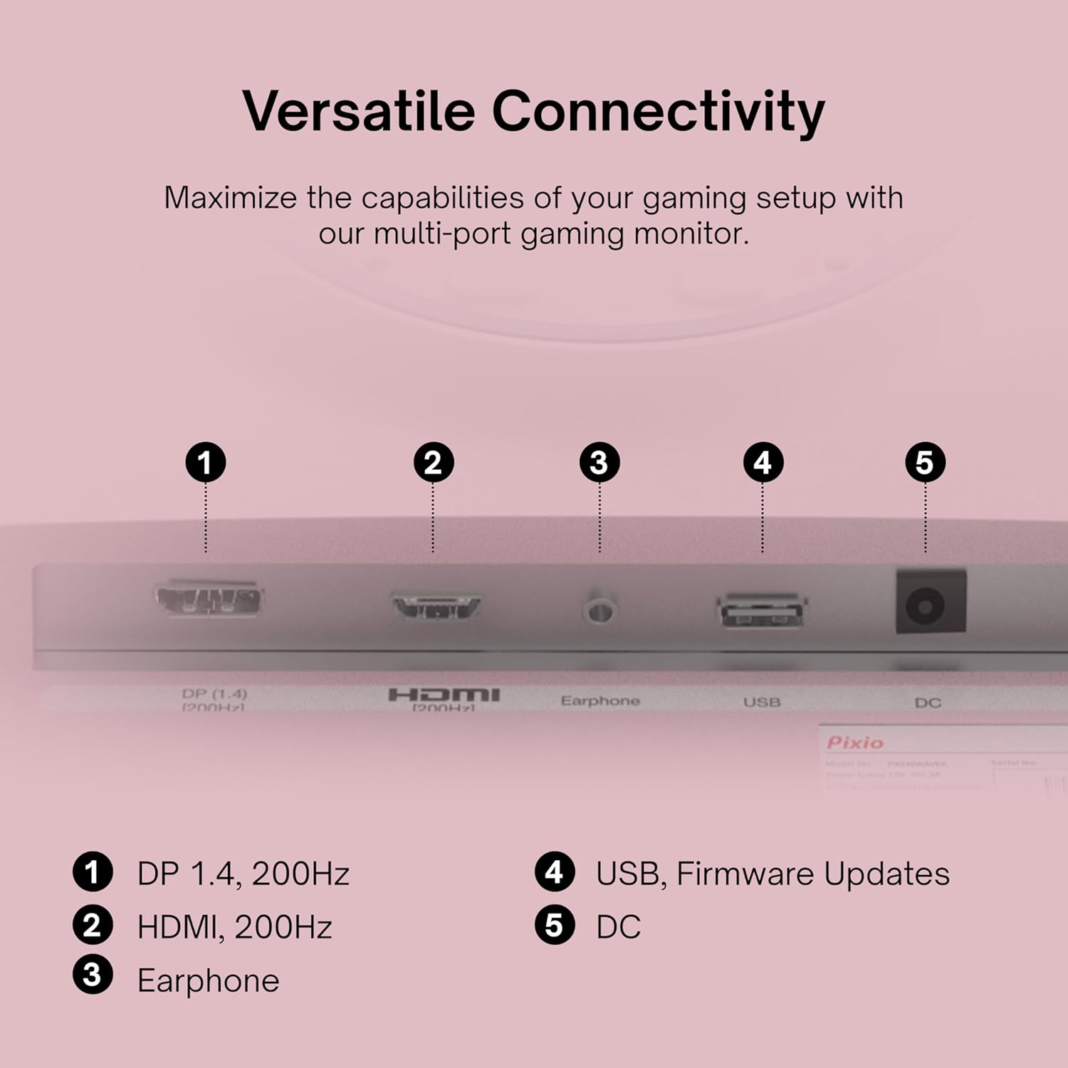 Pixio PX248 Wave Pink 24 inch 200Hz Refresh Rate FHD 1080p Resolution Fast IPS Panel 1ms GTG Response Time Adaptive Sync Built-in Speakers Pink Gaming Monitor
