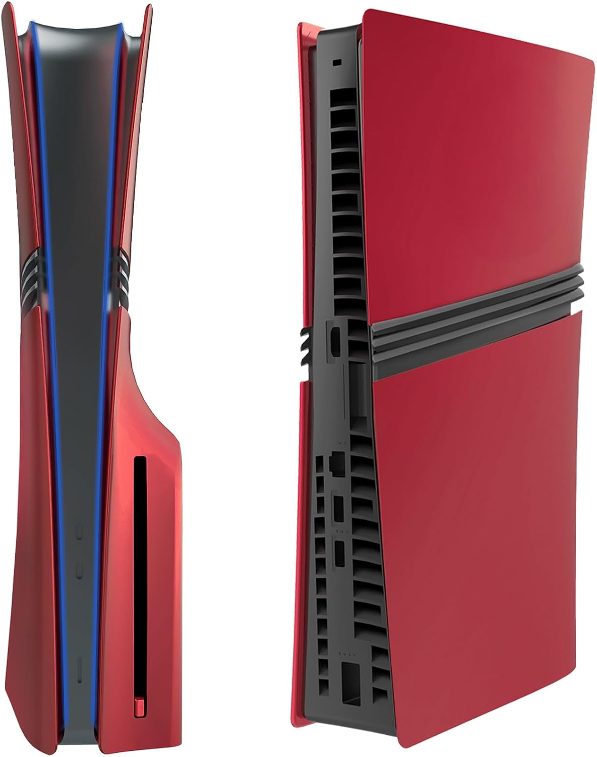 Pro Disc Edition Cover Plates for New PS5 Pro Console, Shell Panels Compatible with New PlayStation 5 Pro Accessories Protective Replacement Faceplate (Red)