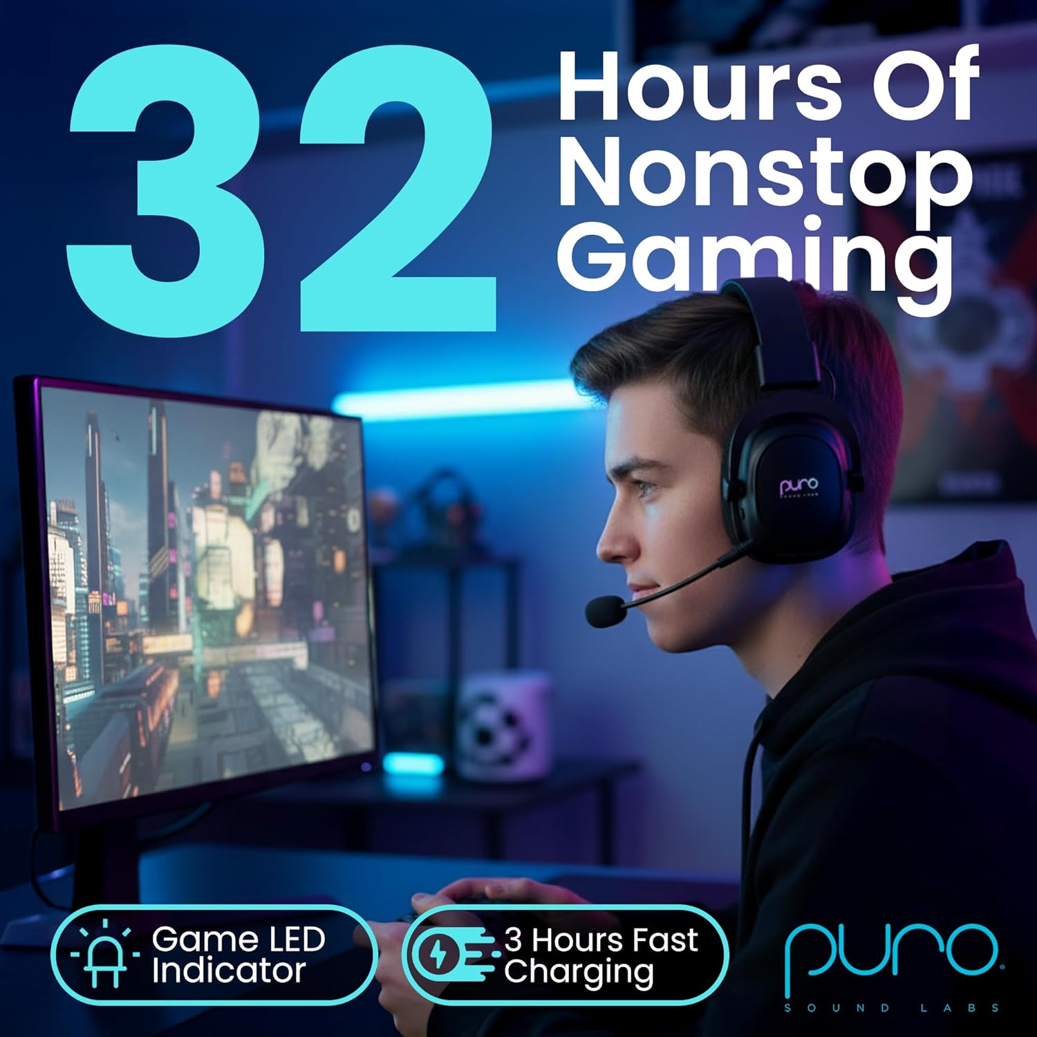 Game longer with up to 32 hours of non-stop play and just 3 hours fast of charging. This gamer headphones with mic delivers consistent performance as your everyday wireless pc headset, keeping you in the action without constant recharging.