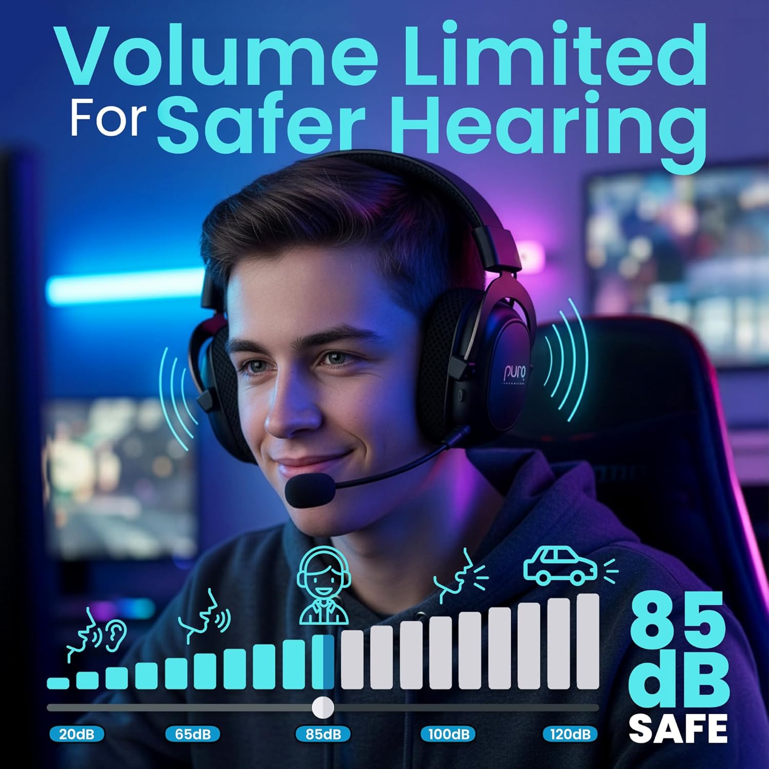Volume-Limited PC Gaming Headset Wireless for Safer Listening