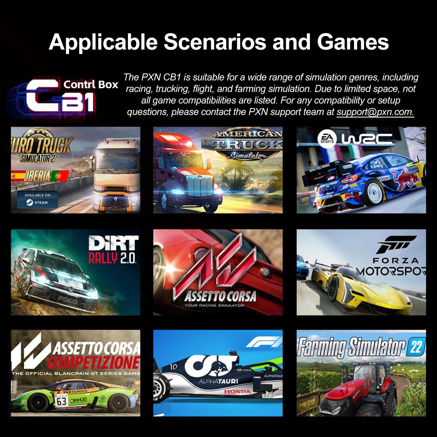 The PXN CB1 is ideal for simulation enthusiasts, supporting a wide range of games: