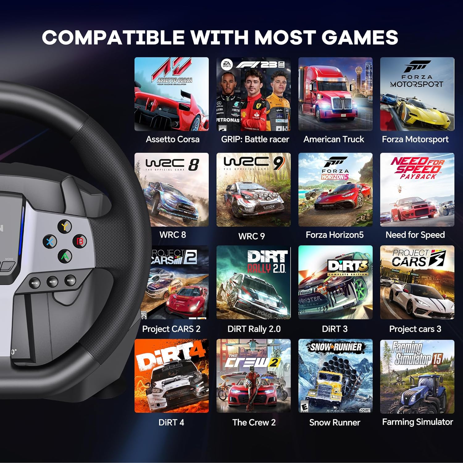 Wide Compatibility & Easy Connectivity: Compatible with PC, PS3, PS4, Xbox One, Xbox Series S, and Xbox Series X, the PXN V9 Gen2 connects via USB for stable performance. Please note: Connection methods may vary by platform. Refer to the user manual for specific setup instructions.