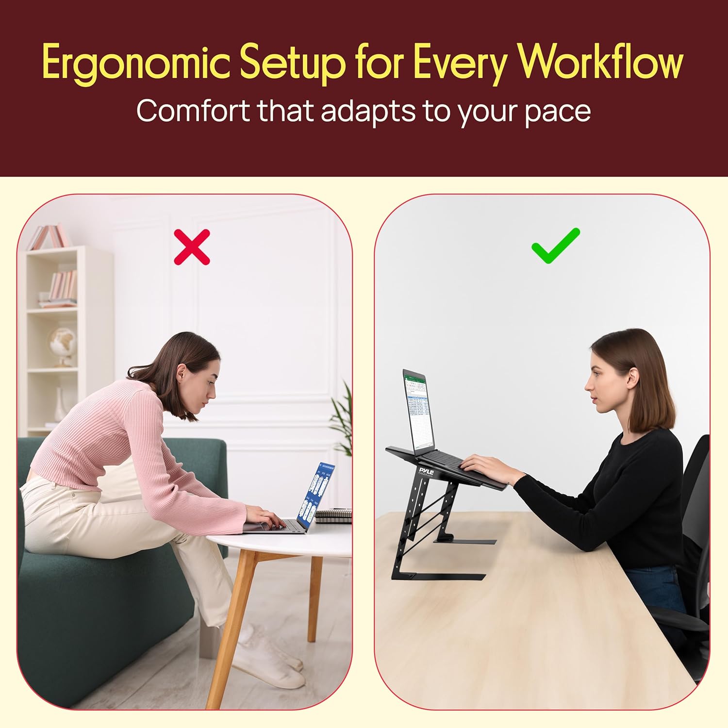 Pyle Portable Dual Laptop Stand – Standing Table with Adjustable Height, Ergonomic Design & Anti-Slip Prongs for DJ Mixer, Sound Equipment, Workstation, Gaming & Home Use – PLPTS38, Black