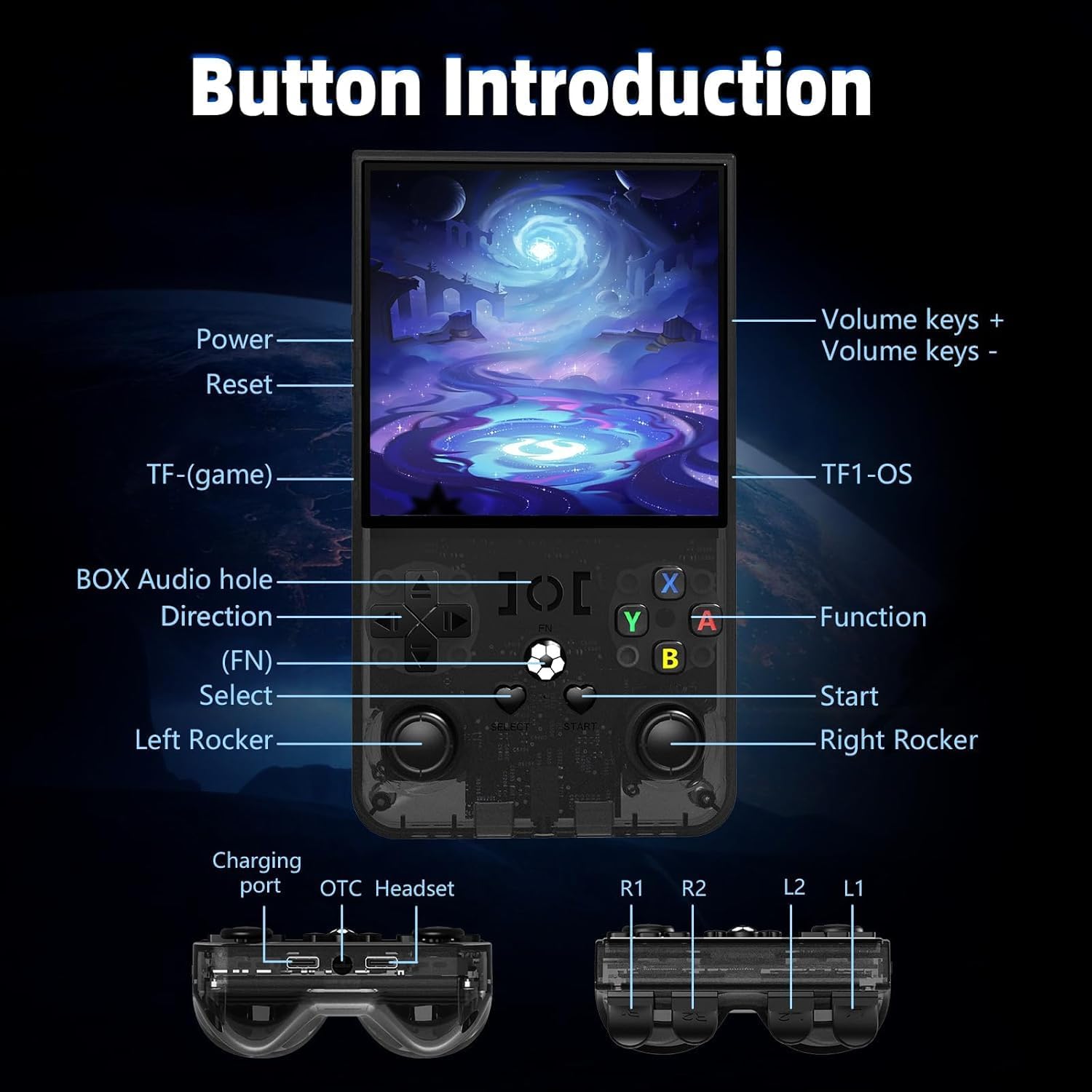 【R36MAX retro handheld game console】R36MAX retro handheld game console, Packed with 22000+ classic retro gaming console , Equipped with RK3326 64-bit quad-core processor, it can run 2D/3D games smoothly, this r36max handheld game console delivers endless fun, Choose between 64GB or 128GB storage—your favorite handheld emulator are always ready