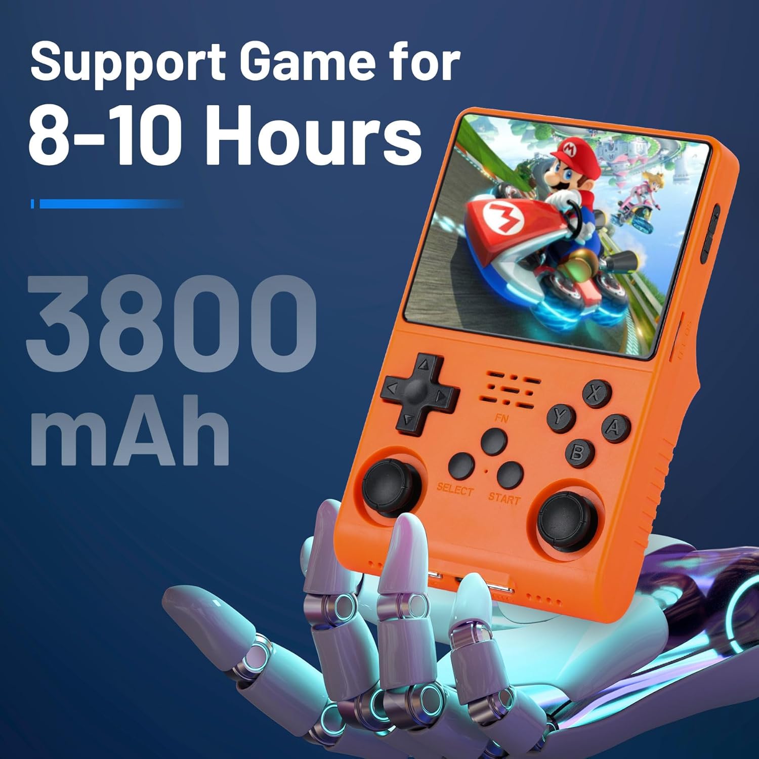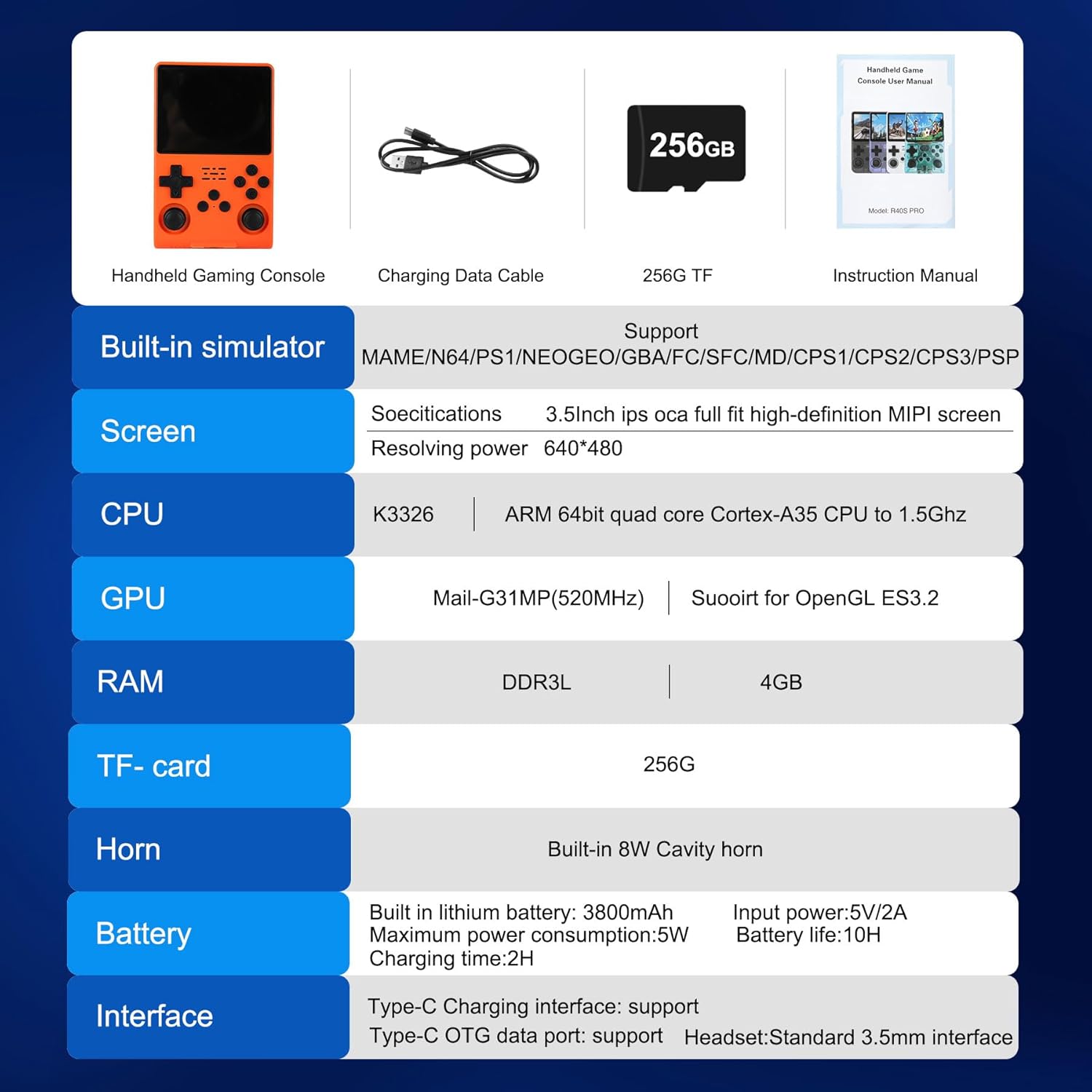R40S Pro Handheld Retro Gaming Console – 256GB Storage, 3800mAh Battery, 3.5″ Full-Lamination IPS Screen, 20+ Emulators, Preloaded 30,000 Games, Multiplayer Support (Orange)