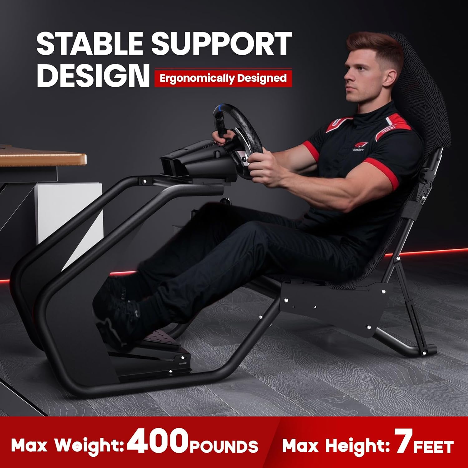 Heavy-Duty for Any Body: Crafted from 60 lbs of industrial-grade carbon steel, this sim racing cockpit offers uncompromising stability with a 400 lbs weight capacity. Its fully adjustable design accommodates users from teens to adults, supporting drivers up to 7 feet tall