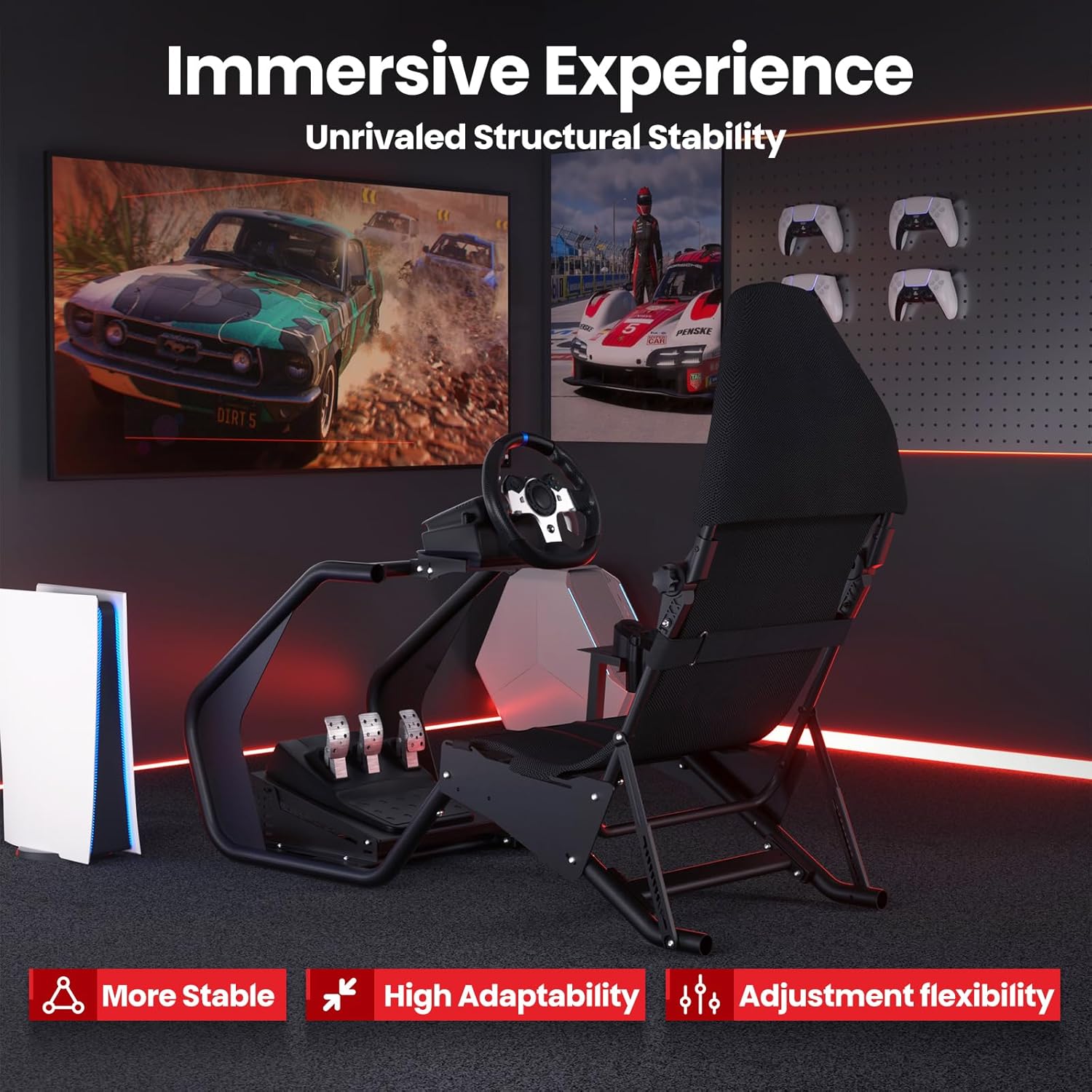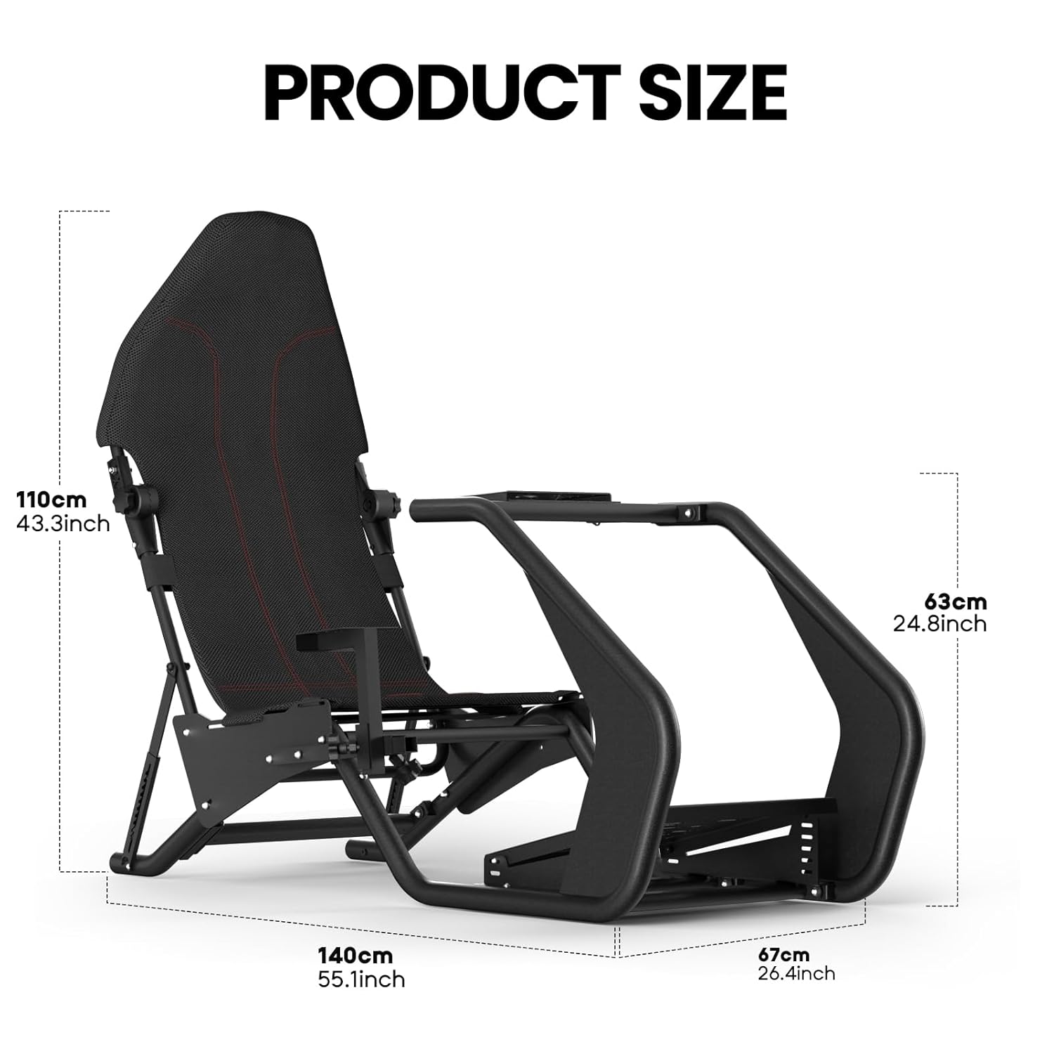 Fully Customizable Racing Position: Fine-tune every angle—steering wheel tilt, pedal position, seat height, and backrest recline—to dial in your ideal ergonomic setup