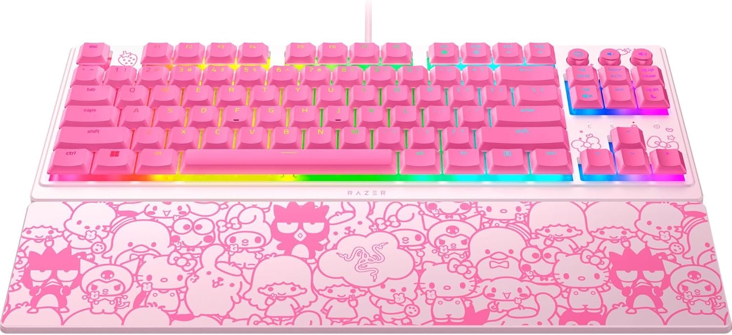 Razer Ornata V3 TKL Gaming Keyboard: Low-Profile Keys – Mecha-Membrane Switches – UV-Coated Keycaps – Backlit Media Keys – 8-Zone RGB Lighting – Magnetic Wrist Wrest – Hello Kitty & Friends Edition