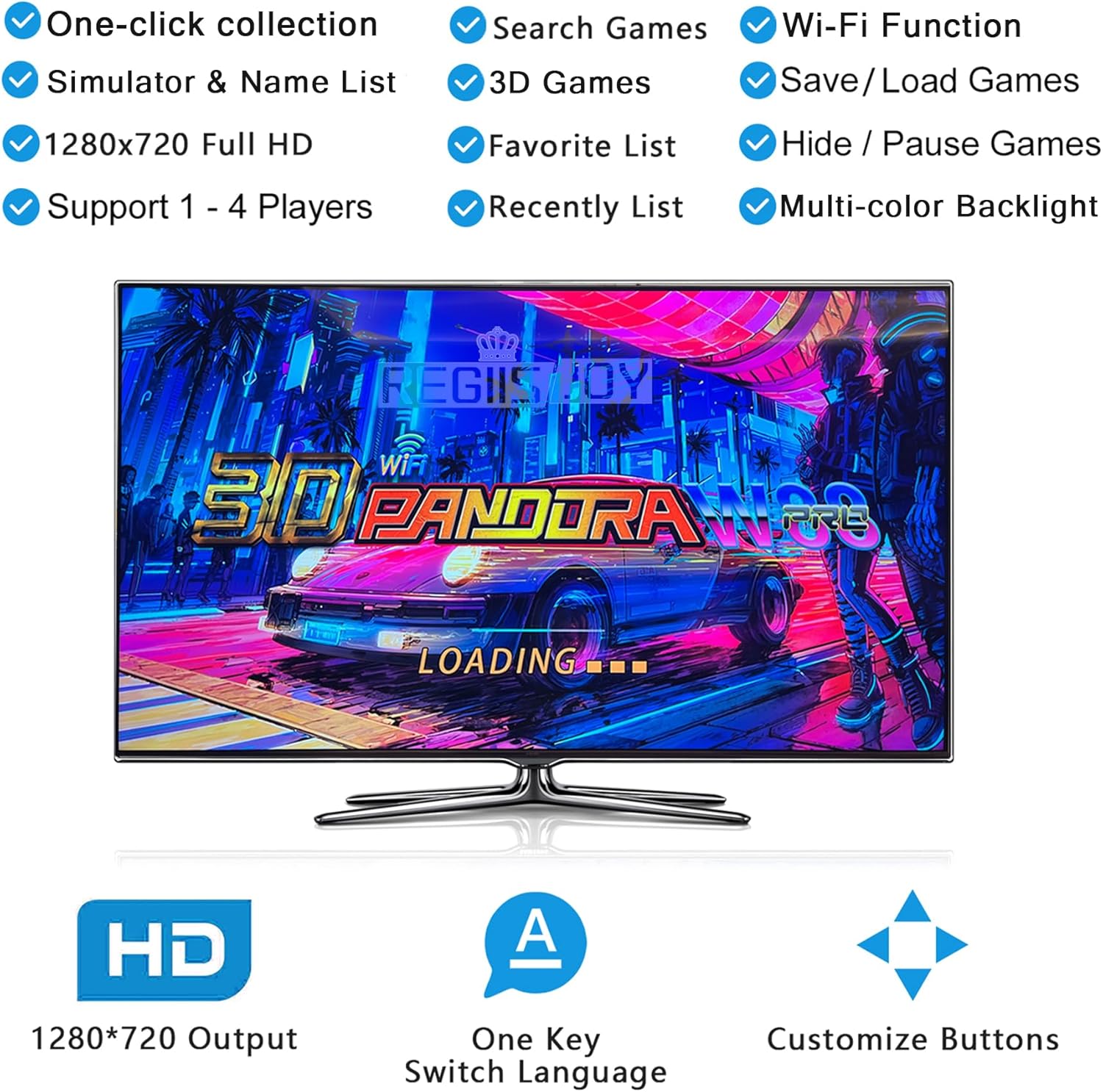 RegiisJoy 24800 in 1 Arcade Game Console Pandoras W88 Pro WiFi Function Game Machine for PC & Projector & TV, 2-4 Players, 1280X720, 3D Games, Search/Hide/Save/Load/Pause Games, Favorite List