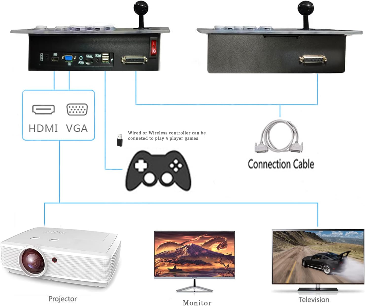 【More Features You’ll Love】: The most all-in-one arcade machine yet! Dual switch design for lights and power.Save/load/search/hide/pause games easily; track recent plays and favorites. 4-Player Games (perfect for game nights!) and customize buttons, difficulty, health, or playtime to your style. Supports 6 languages—English,Spanish,Japanese, Korean, Simplified/Traditional Chinese.