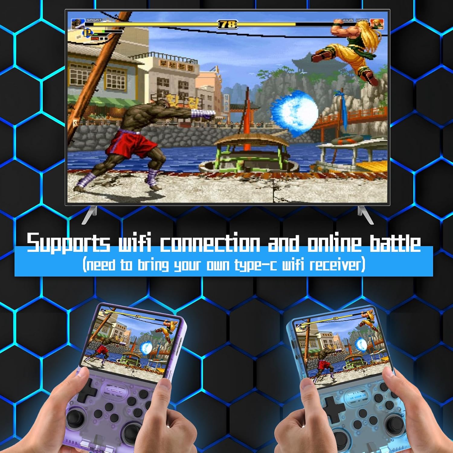 【Free modification permissions】 In some games,you can switch simulator cores, adjust screen orientation and ratios, and apply screen filters. It also supports Wi-Fi connectivity and online battles (requires a Type-C interface Wi-Fi receiver, not included).