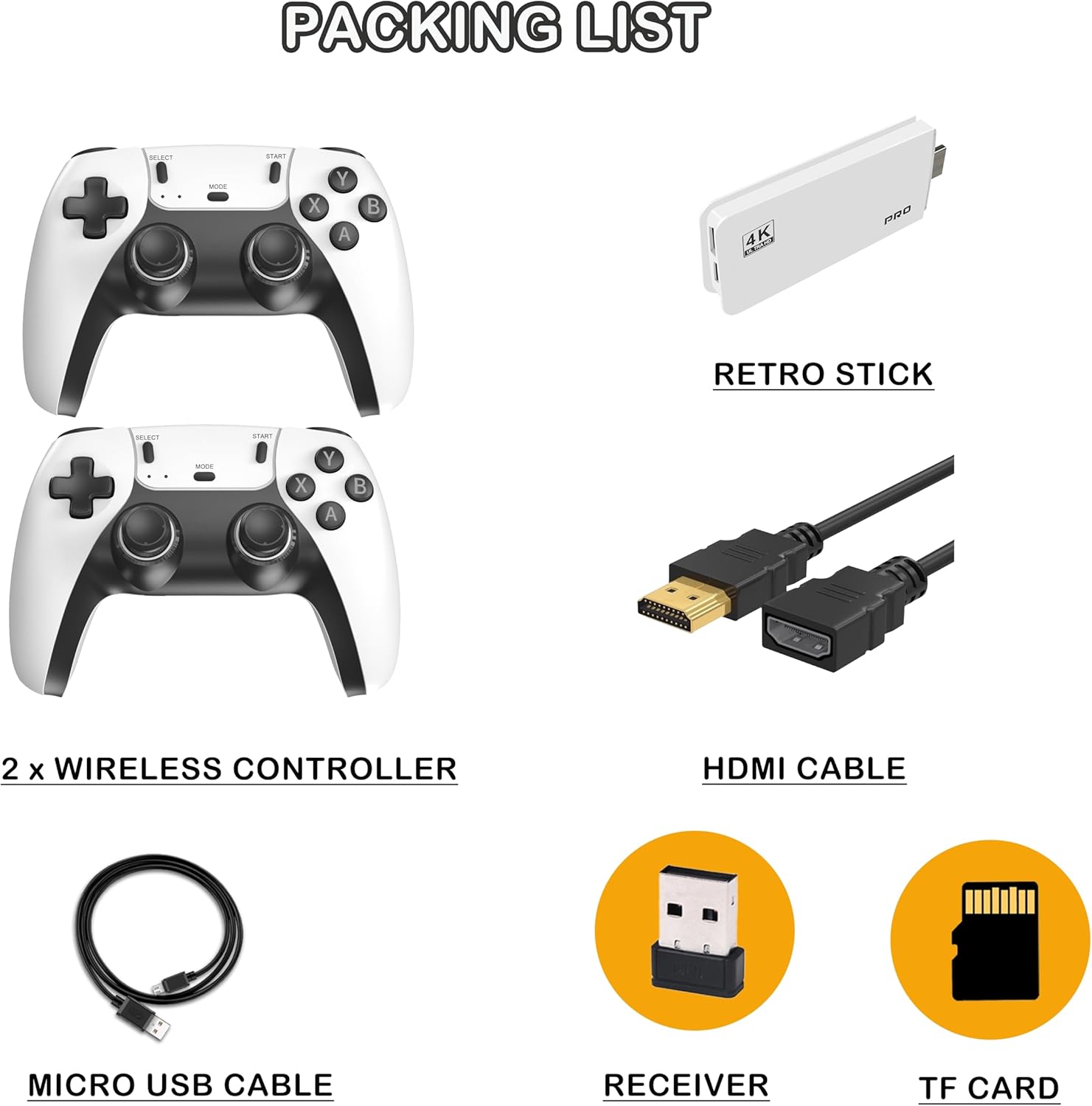 Retro Game Console, Plug and Play Video Game Console Built in 40000+ Games, 28 Classic Emulators, 4K High Definition HDMI Output for TV with Dual Controllers