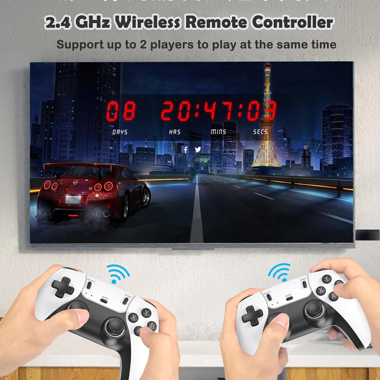 【Built-in 39999+ Retro Games】This TV game console built in 39999+ rich games, is pre-install 28 emulators, and pack with 64GB TF card. You can play 39999+ classic games just by connecting to the TV. Let you play games without repetition every day and bring back your memory to the fun of childhood,enjoy family entertainment time!