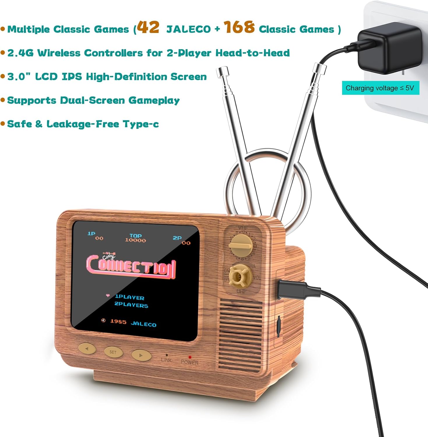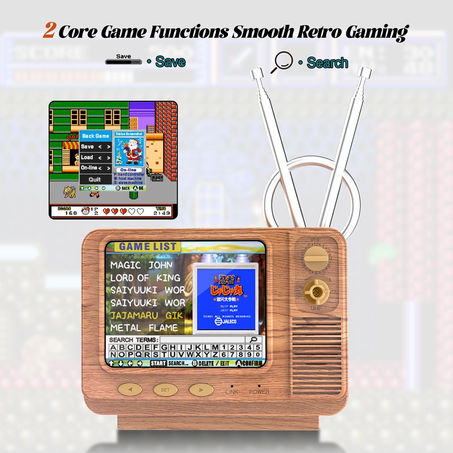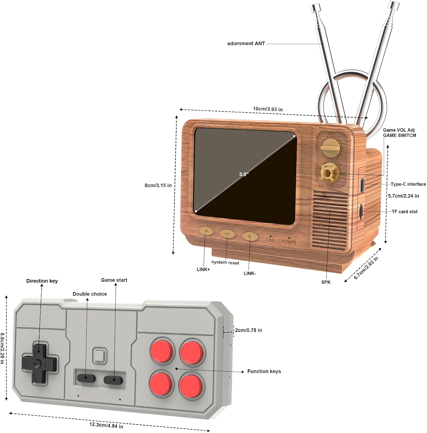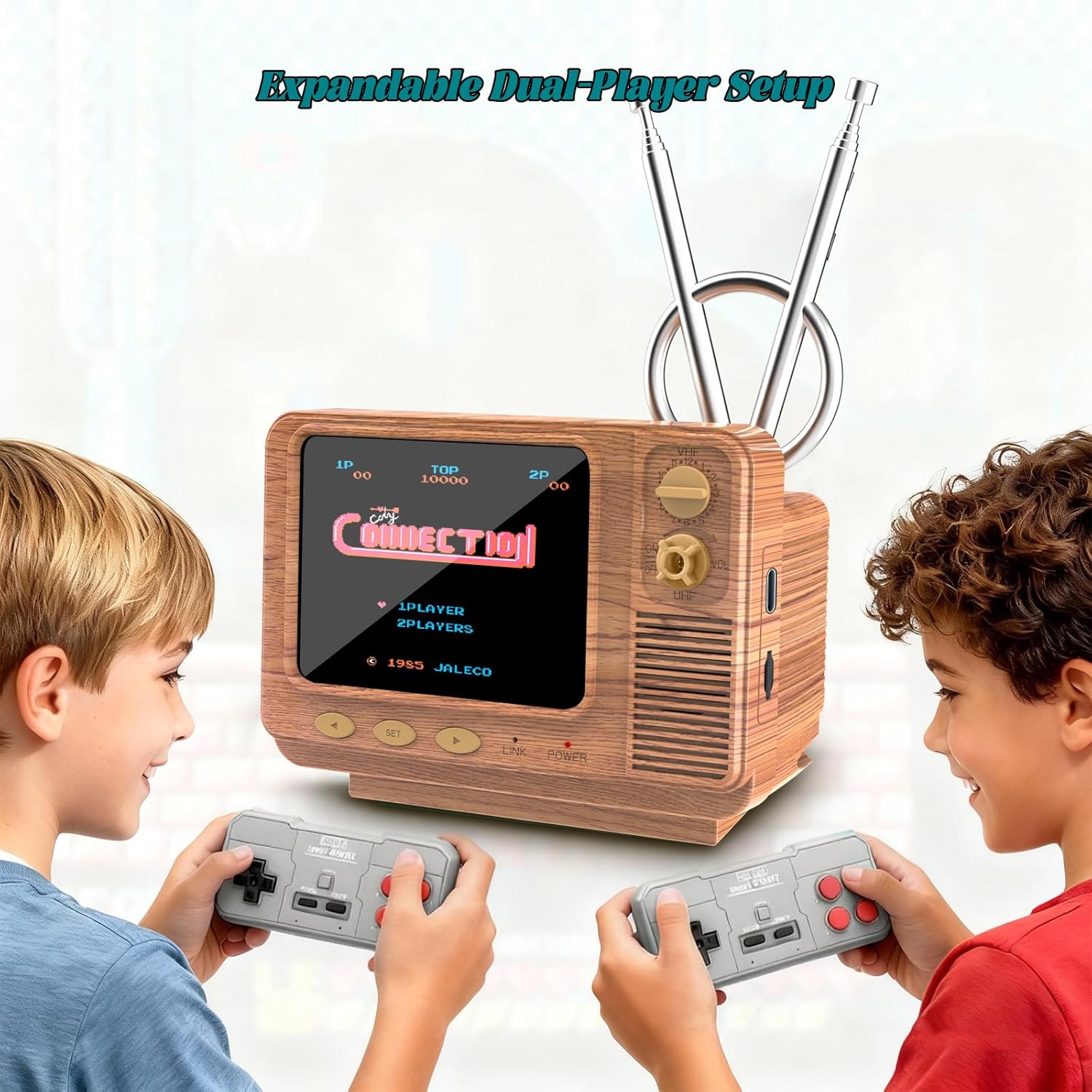 Ideal Nostalgic Gift for Kids & Adults + Retro Decor:With its classic mini TV retro design, this console works not only as an entertaining gaming device but also as a stylish retro decor piece to spruce up your space. It’s a perfect gift for birthdays, Christmas, New Year, and other holidays—bringing joy to both kids and adults, and adding warm nostalgic charm to any occasion.