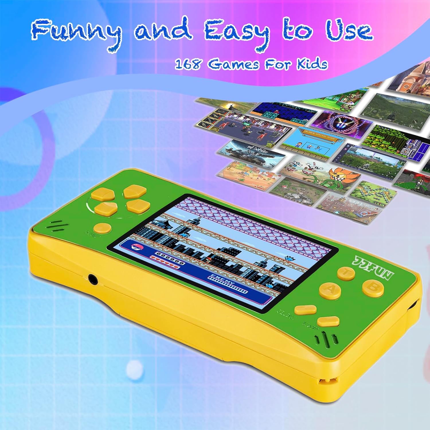 Retro Handheld Games for Kids, 3.2″ Large Screen Portable Game Player Preloaded 168 Classic Video Games, Rechargeable, TV Output, Arcade Style Gaming Device, for Boys Girls (Green)