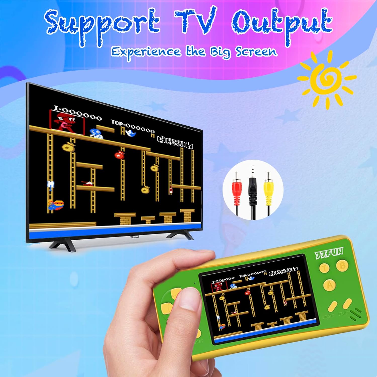 【Surprising Gift for Kids】 This retro handheld game systems is perfect as a best gift on birthdays, Christmas,Easter,Halloween,Thanksgiving,and other festivals. To put the environmental concept into practice,our game console is designed with a “gift – box – style packaging” right from the factory. It can be directly given as a gift without the need for secondary packaging, reducing the waste of packaging materials at the source.