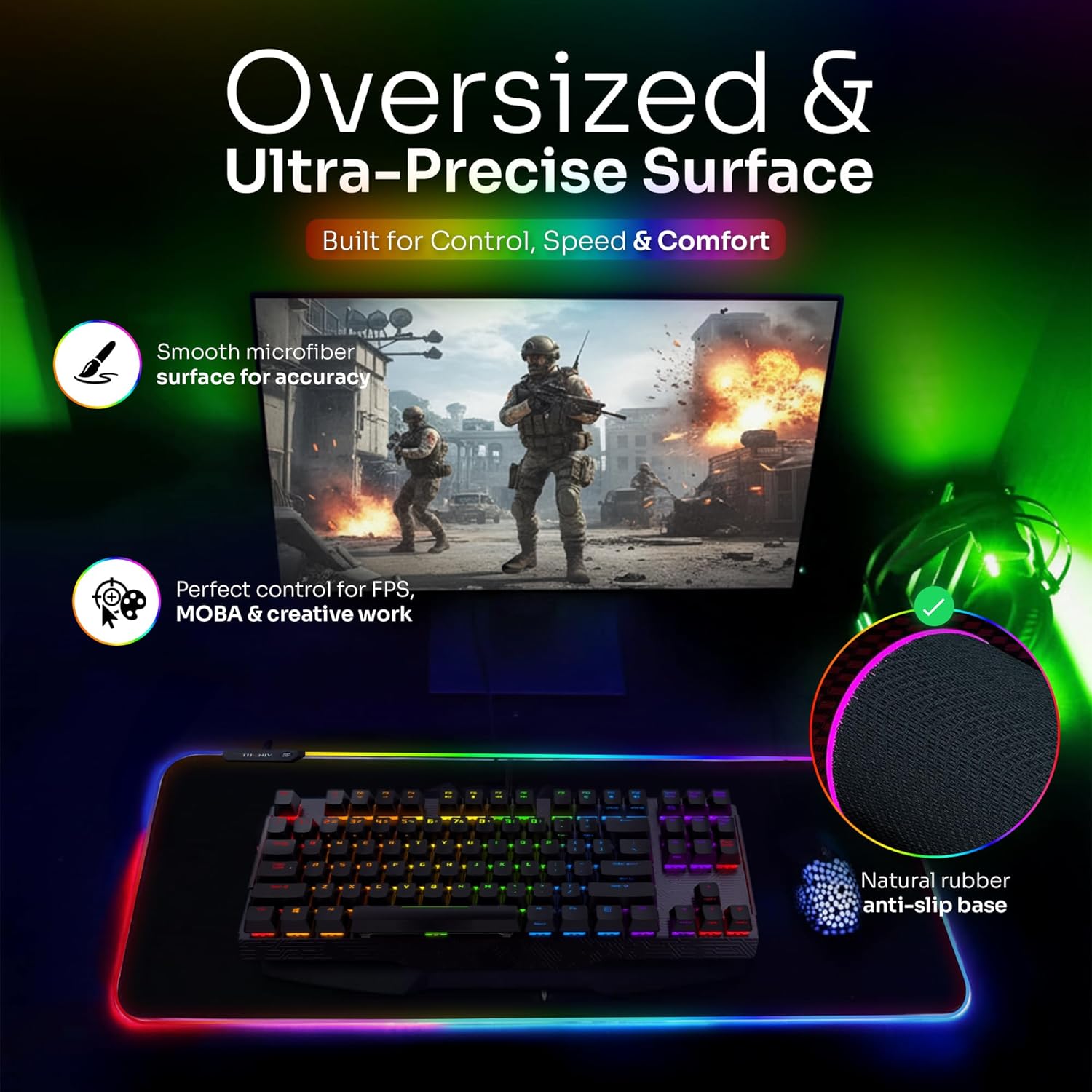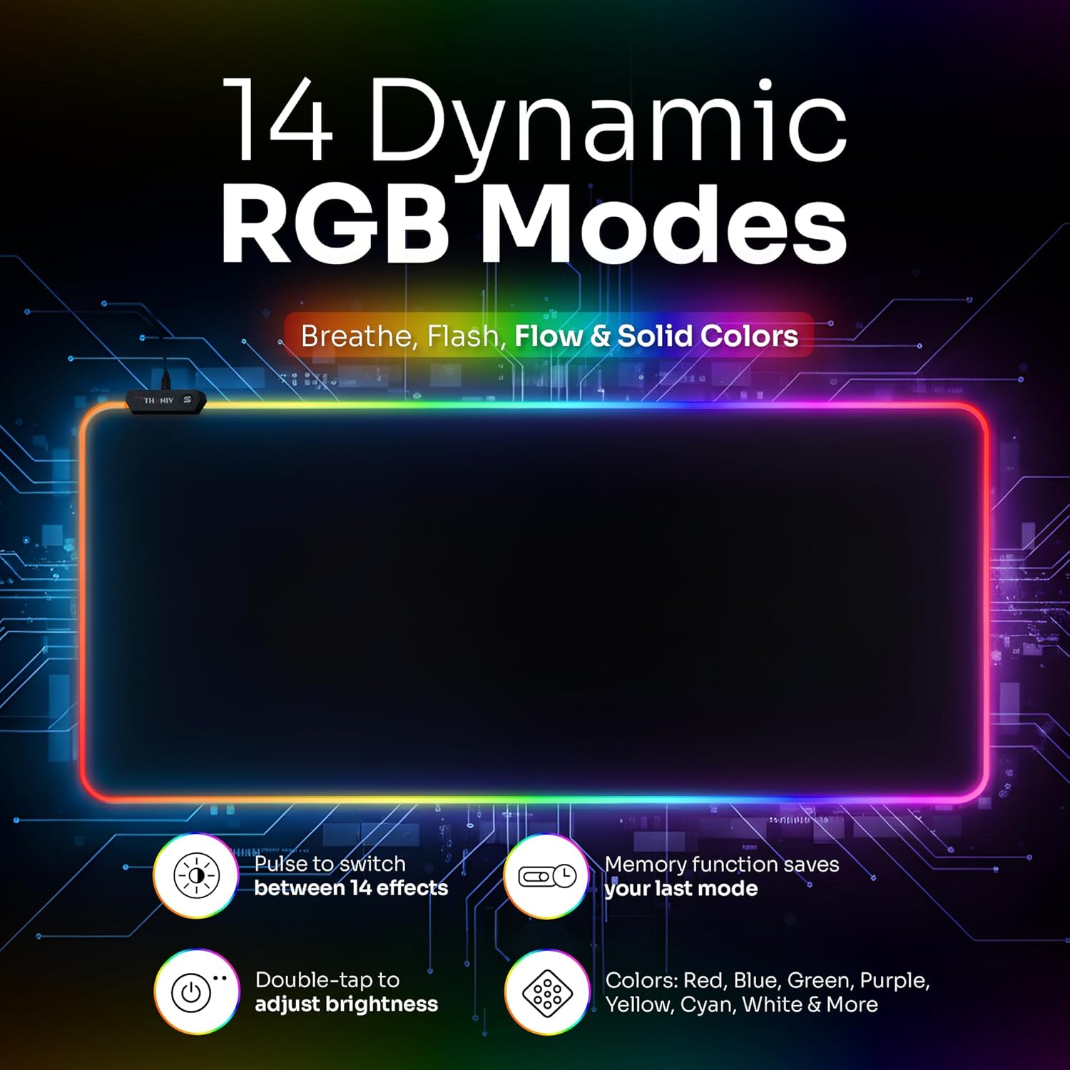 RGB Mouse Pad 35.4×15.7 Inches – Extended LED Mouse Pad with 14 Lighting Modes, Gaming Desk Mat, PC Gaming Accessories, Large Keyboard Pad with Non-Slip Rubber Base.