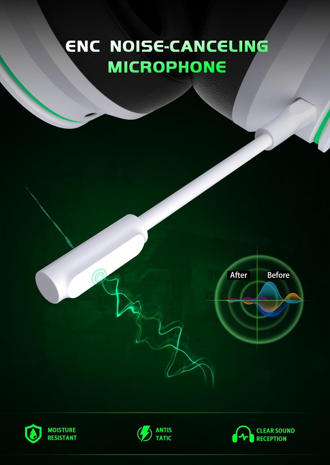【ENC Microphone】The Captain 200 xbox headset wireless features a detachable, flexible, and omnidirectional microphone with high-end ENC noise cancellation. This mic adjusts to your preferred angle, ensuring clear voice transmission for enhanced teamwork.