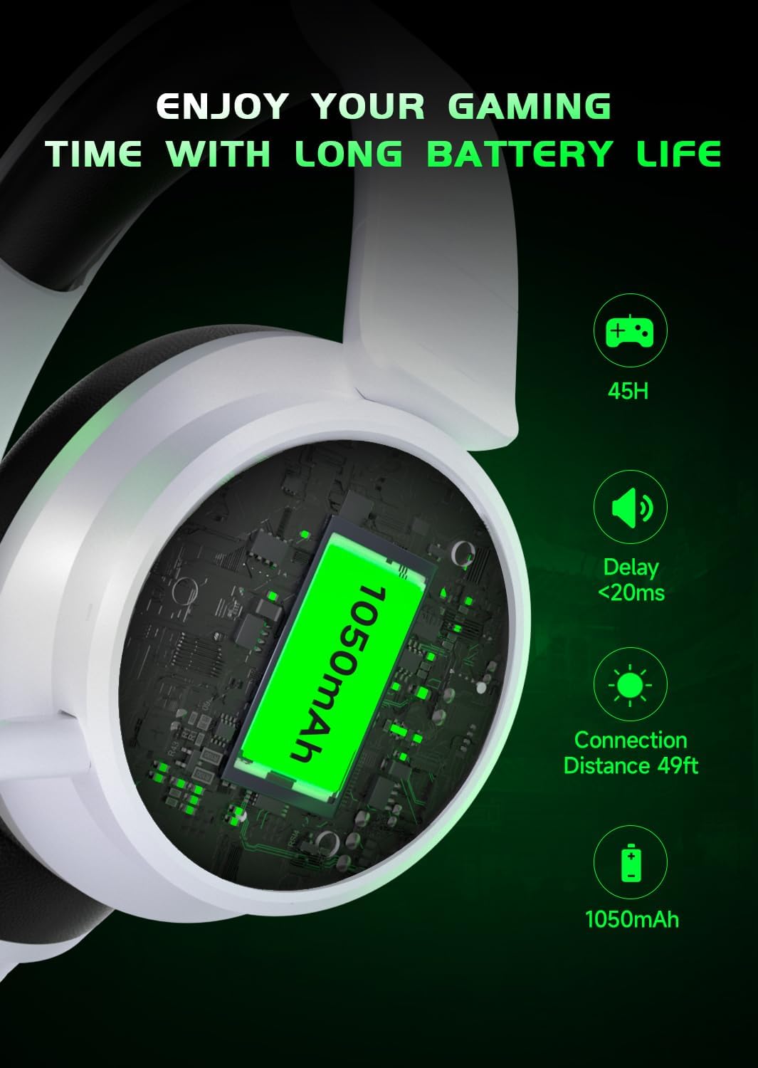 【Excellent Sound Quality】The Captain 200 wireless xbox headset features a 50MM audio dynamic driver with PET biological diaphragm technology, delivering enhanced sound quality with a wide frequency response range (20Hz-20kHz). It captures every footstep and explosion with precision and ensures ultra-low latency (≤20ms) for a seamless and immersive gaming experience.